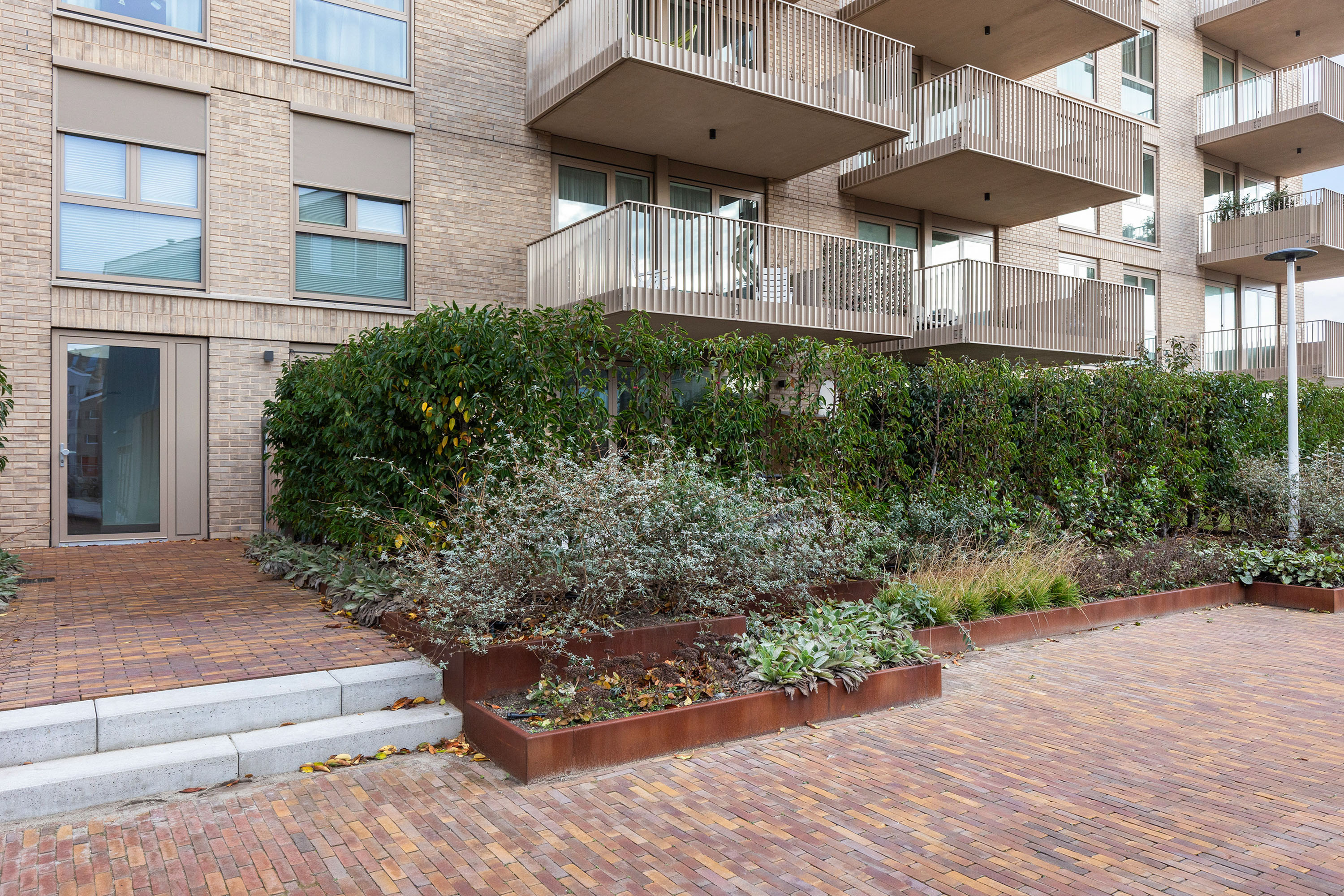 On the lower ground floor there is a private parking space equipped with an individual charging station for an electric vehicle (available for takeover), as well as a spacious private storage room with electricity. There is also a shared indoor bicycle storage area with charging facilities for e-bikes.
