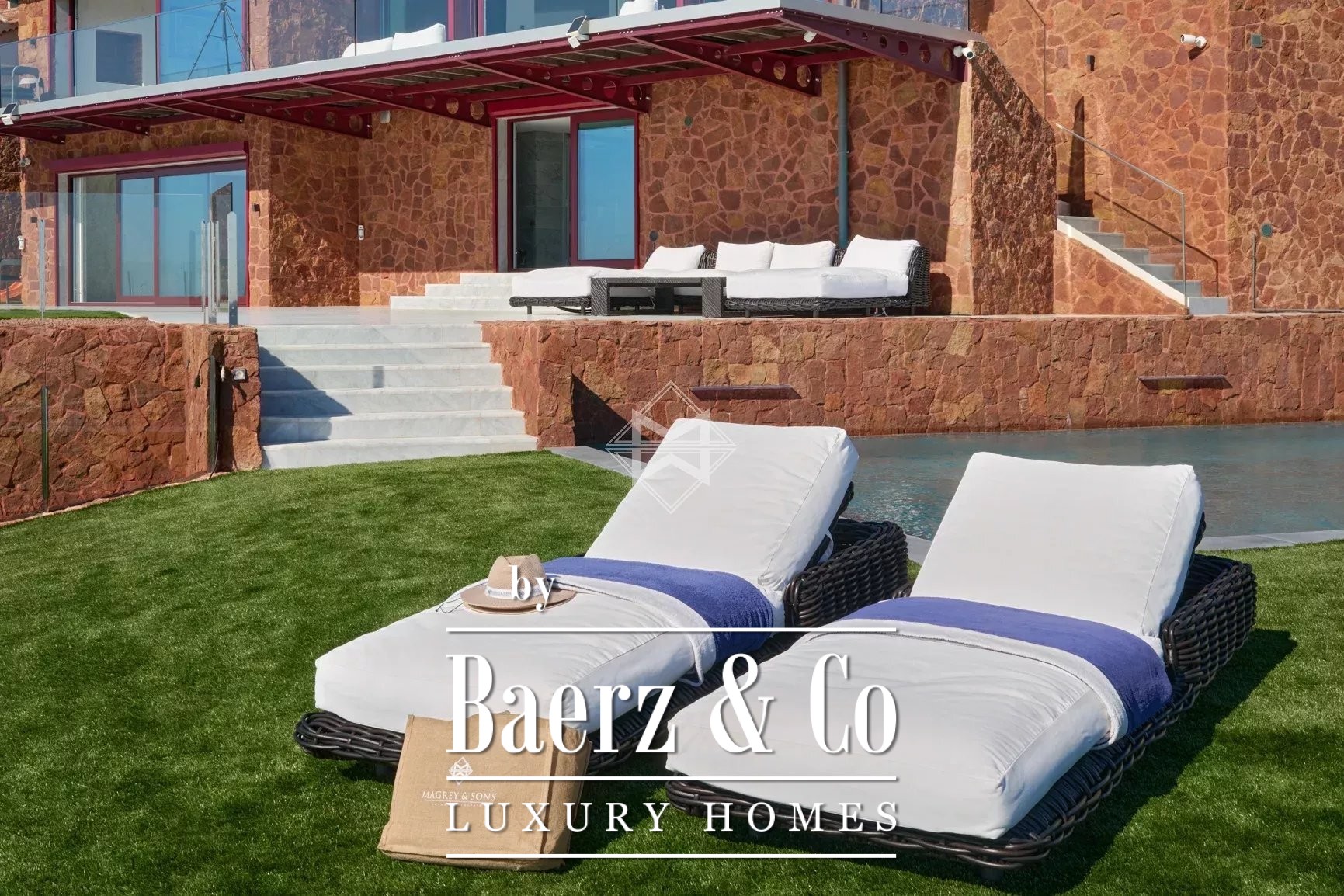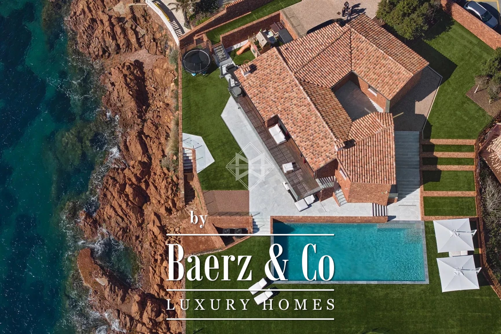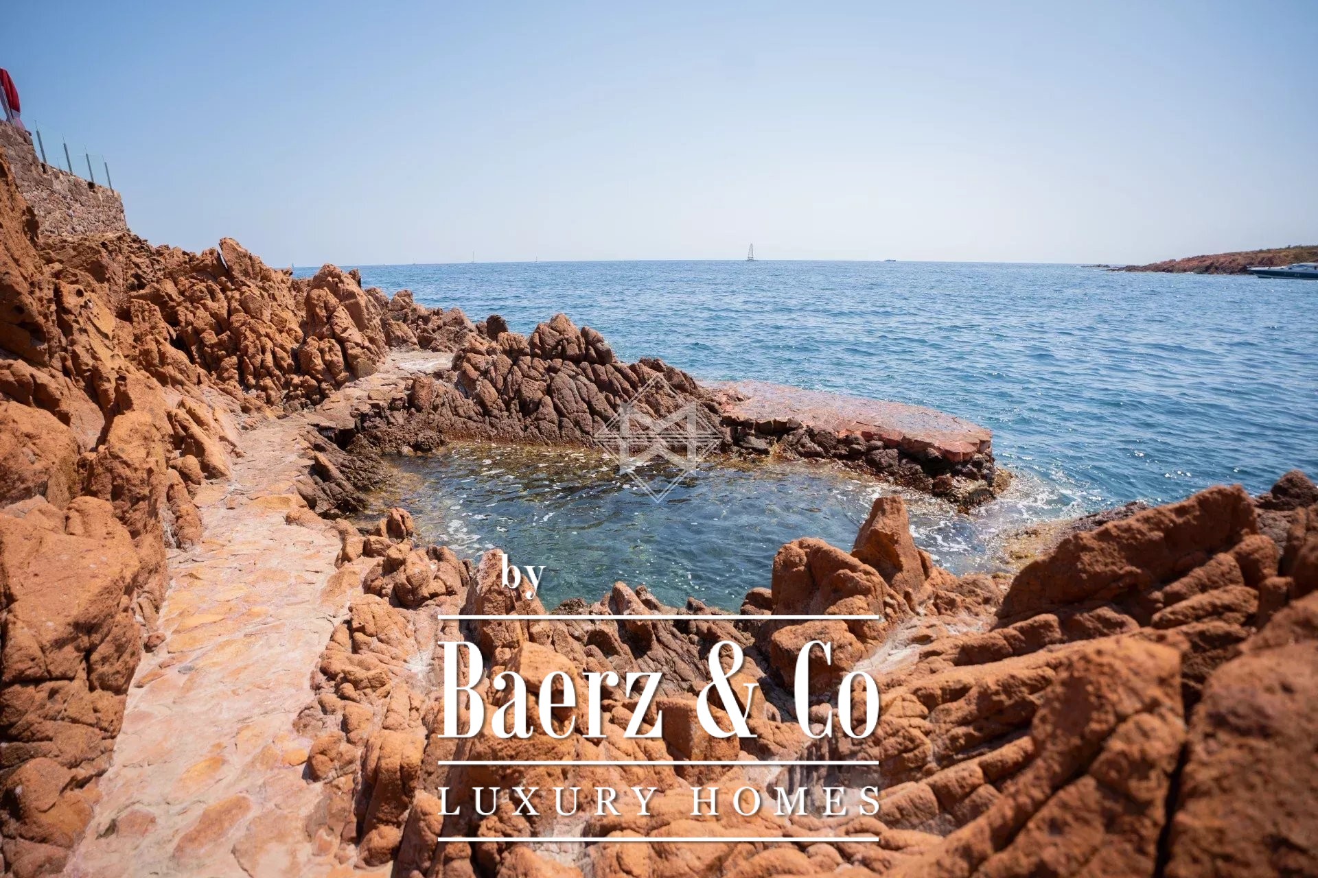 Property Agay stands with conviction on the seafront between Théoule-sur-Mer and Saint-Raphaël, offering contemporary architecture shaped by the surrounding red rocks of the Esterel. This property Agay is fully renovated, its 309 m² living area revealing harmonious spatial flow between three bedrooms, generous entertaining areas, and a separate apartment—each space oriented to embrace the translucent sweep of the Mediterranean.