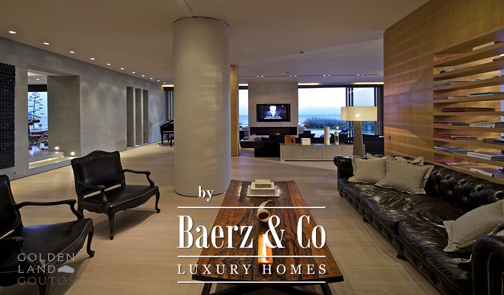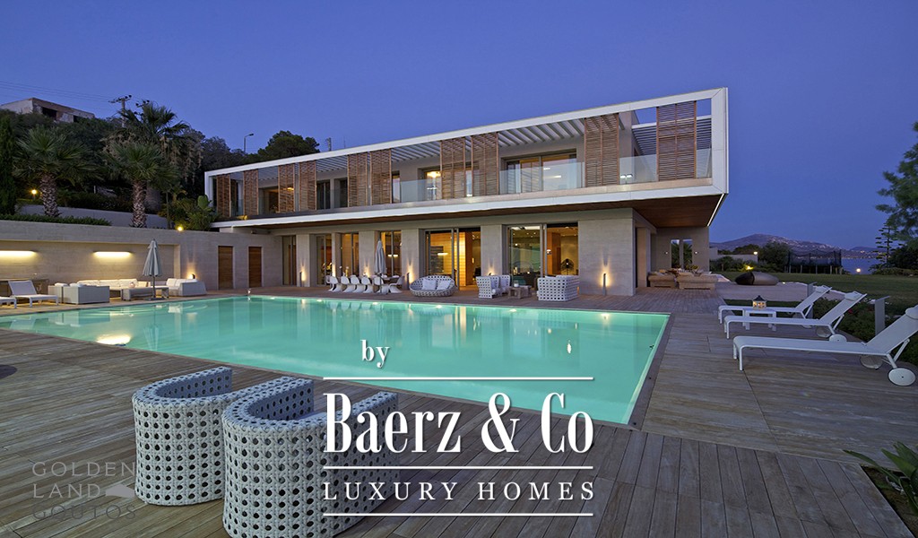 Villa Agia Marina stands as a refined statement in contemporary waterfront living. This villa Agia Marina with its 800 m² of meticulously designed space sits directly on the coastline, framed by 5,000 m² of landscaped grounds, offering an immediate, tranquil connection to the private beachfront and the Saronic Gulf beyond.