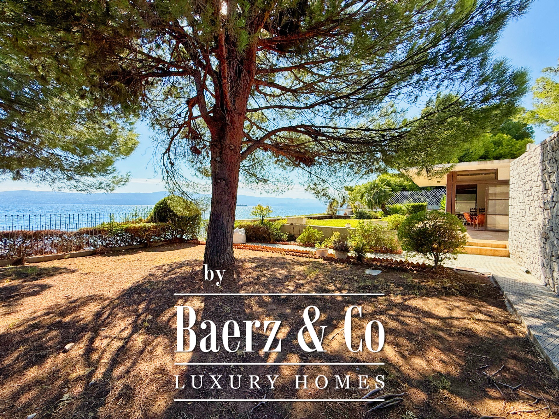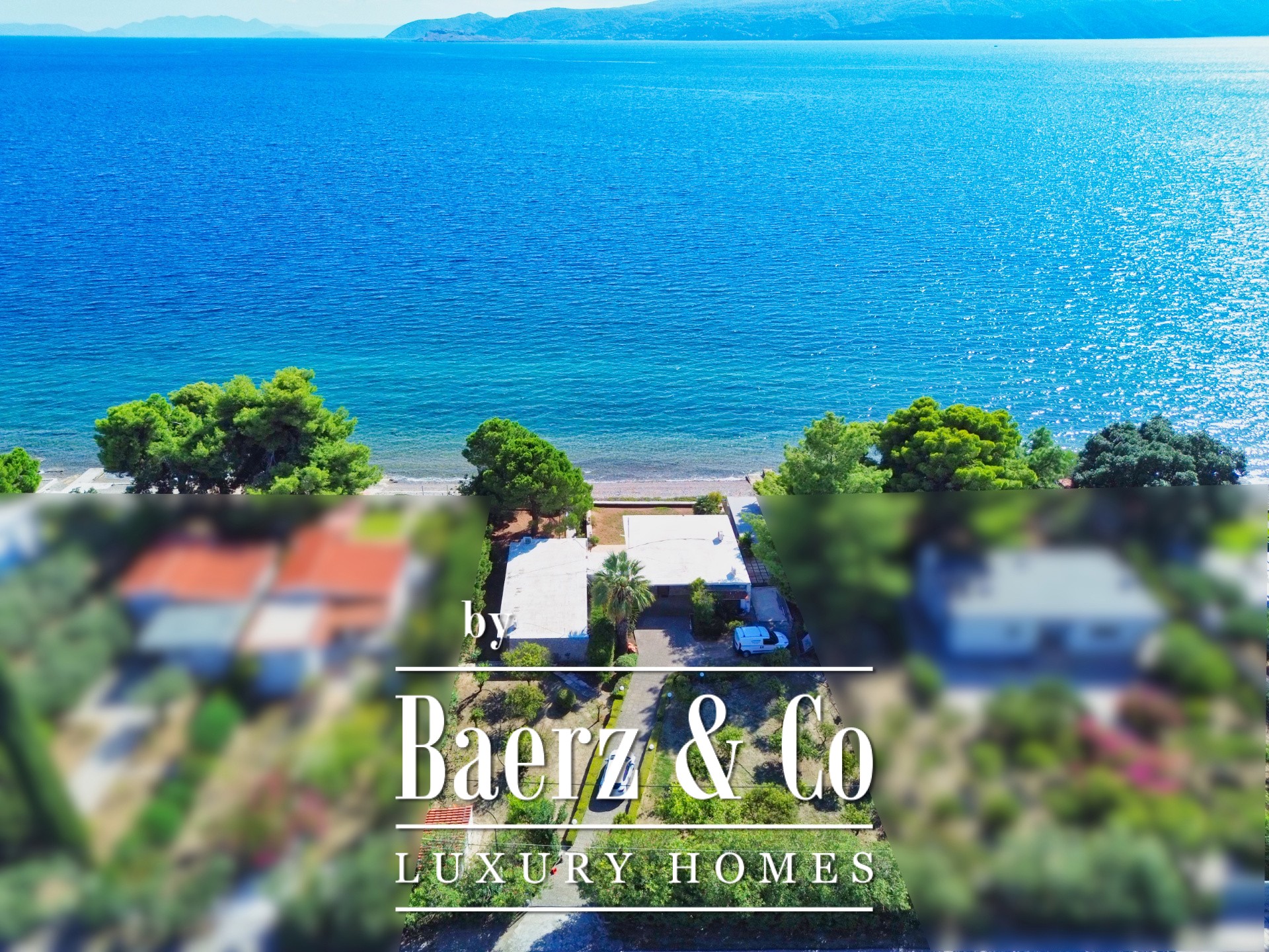 This detached house Agioi Theodoroi occupies a privileged seafront location in Corinthia, set on a 1,400 m² plot with panoramic and unobstructed views of the water. Built in 1967, the 140 m² residence comprises five bedrooms, two bathrooms, a kitchen, a living room, and a light-filled sitting area framed by expansive openings. The connection between interior and landscape is immediate, with the main living space inviting natural light and anchoring every moment to the sea just beyond.