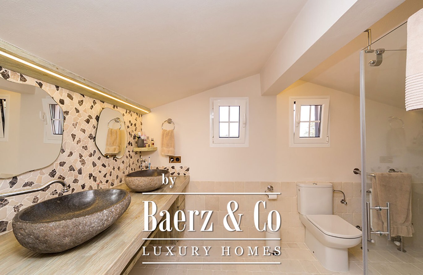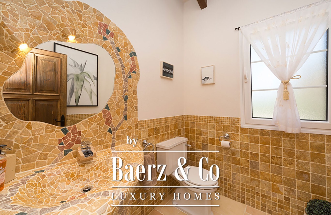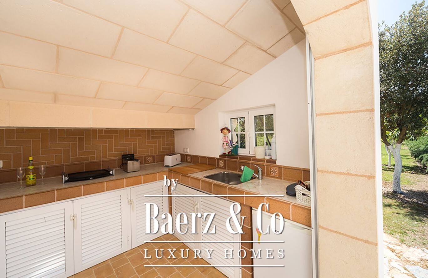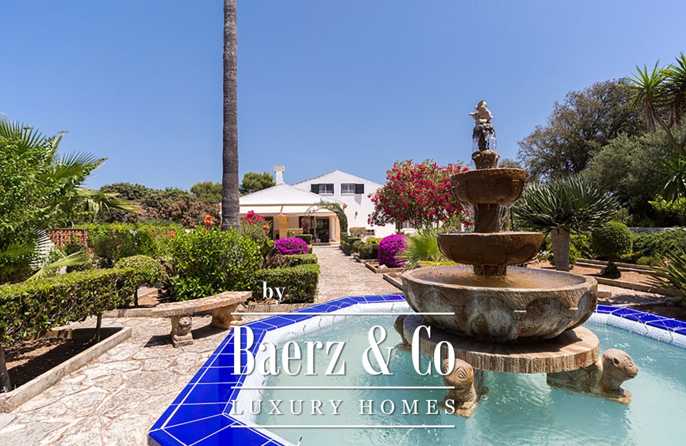 Outdoors, a swimming pool with changing rooms, tennis and basketball courts, mature garden with fountain, barbecue, stables, and a garage for equipment reflect the estate’s careful cultivation of leisure and nature. The property delivers a rare balance of rural privacy and proximity to Menorca’s coastline, ideal for those seeking land and legacy. The rustic estate for sale in Alaior invites a considered pace of life in enduring surroundings.