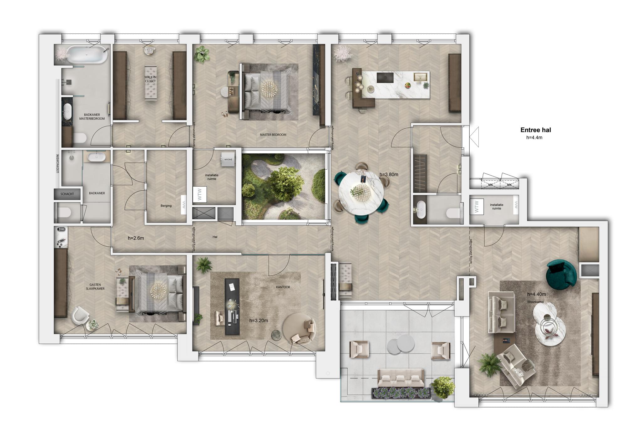 - Masterbedroom met luxe badkamer en suite en walk-in-closet;