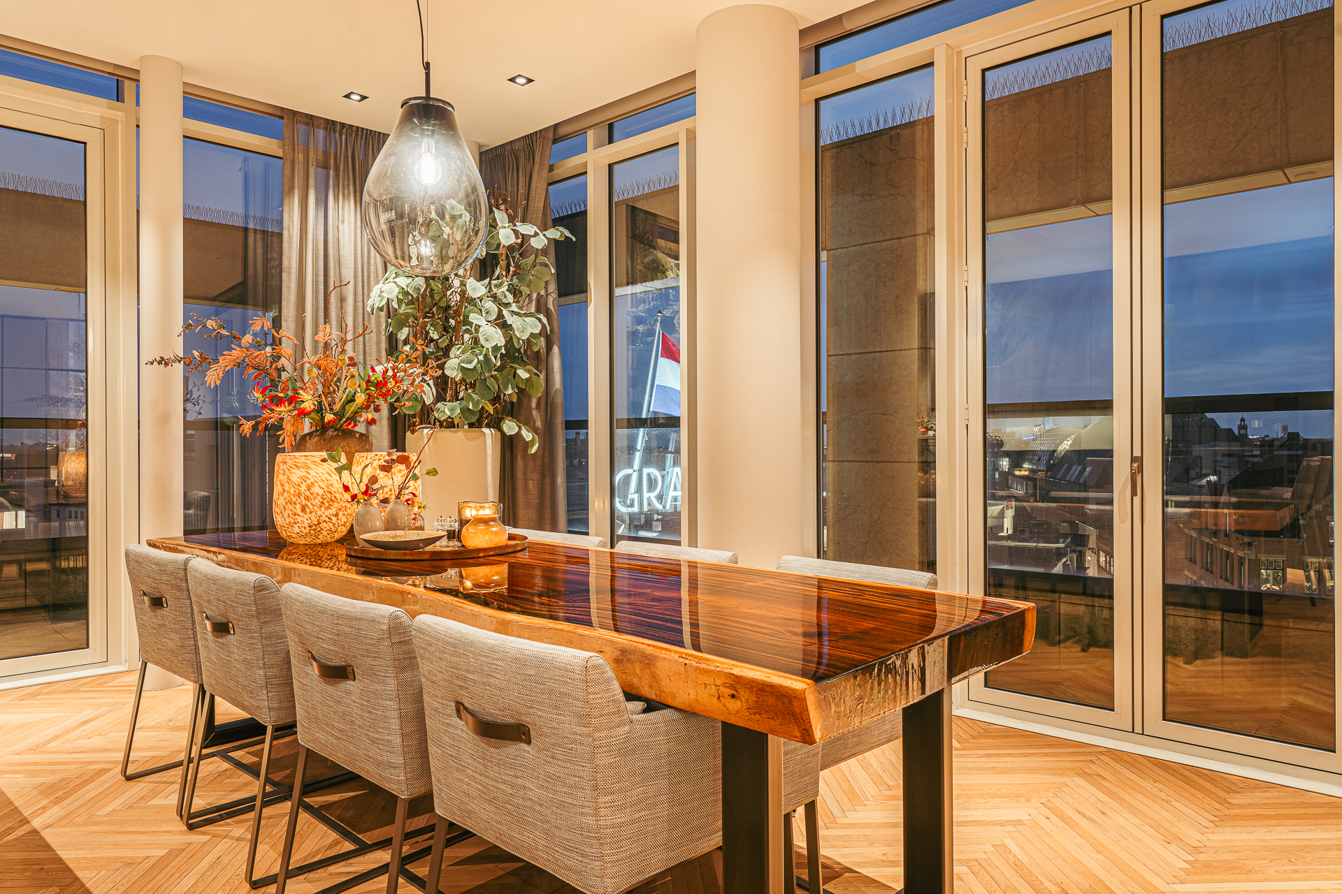 Living at this level has long been rare in Amsterdam and was mainly reserved for world cities such as New York, Paris, Singapore, or London. Thanks to the five-star services of the adjacent Grand Hotel Krasnapolsky, you can now experience the same international standard of comfort here. Room service, housekeeping, and a wide range of hotel facilities are at your disposal. This makes the apartment equally appealing as a pied-à-terre for international residents and for Amsterdammers seeking ultimate ease and luxury.