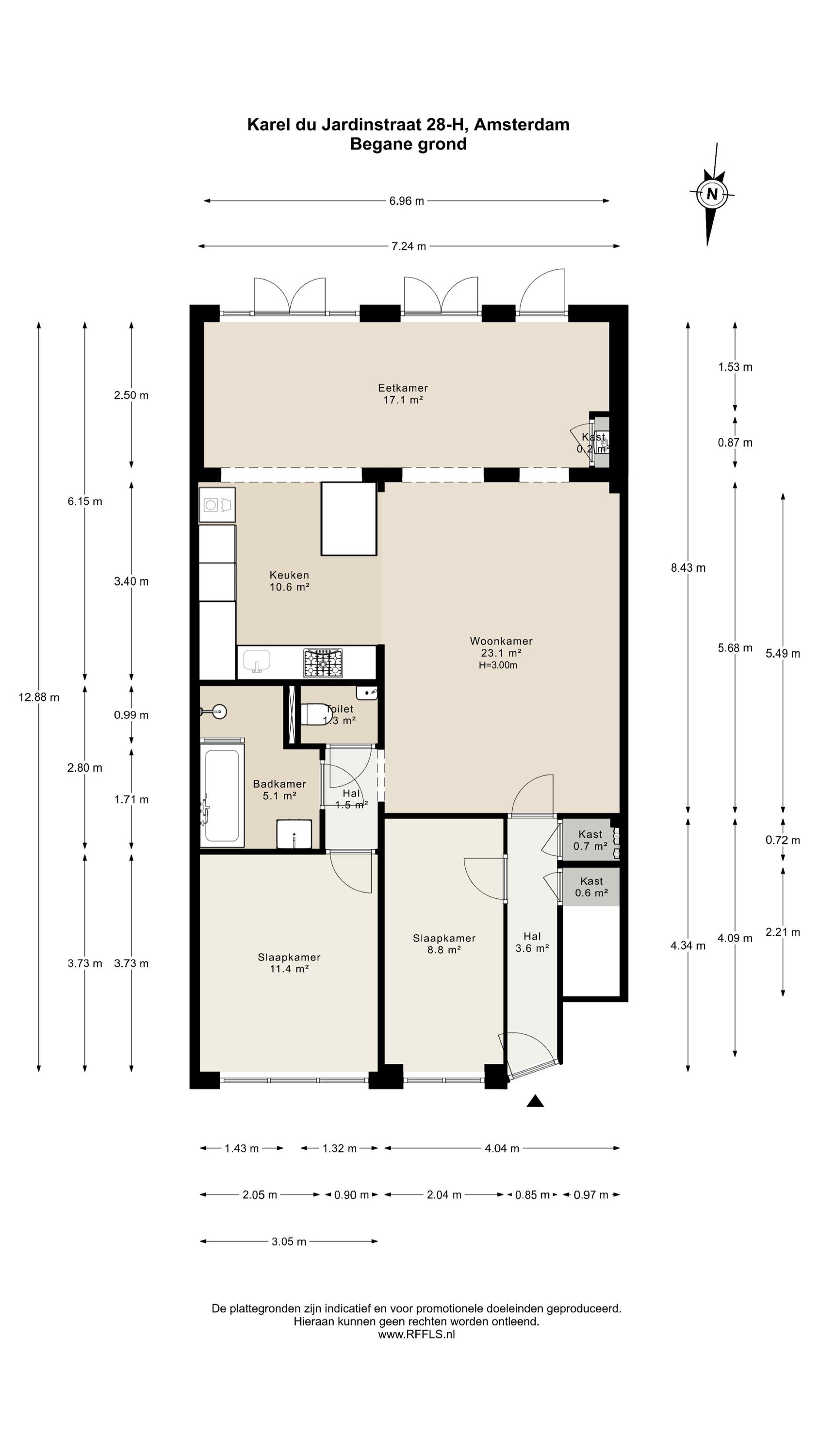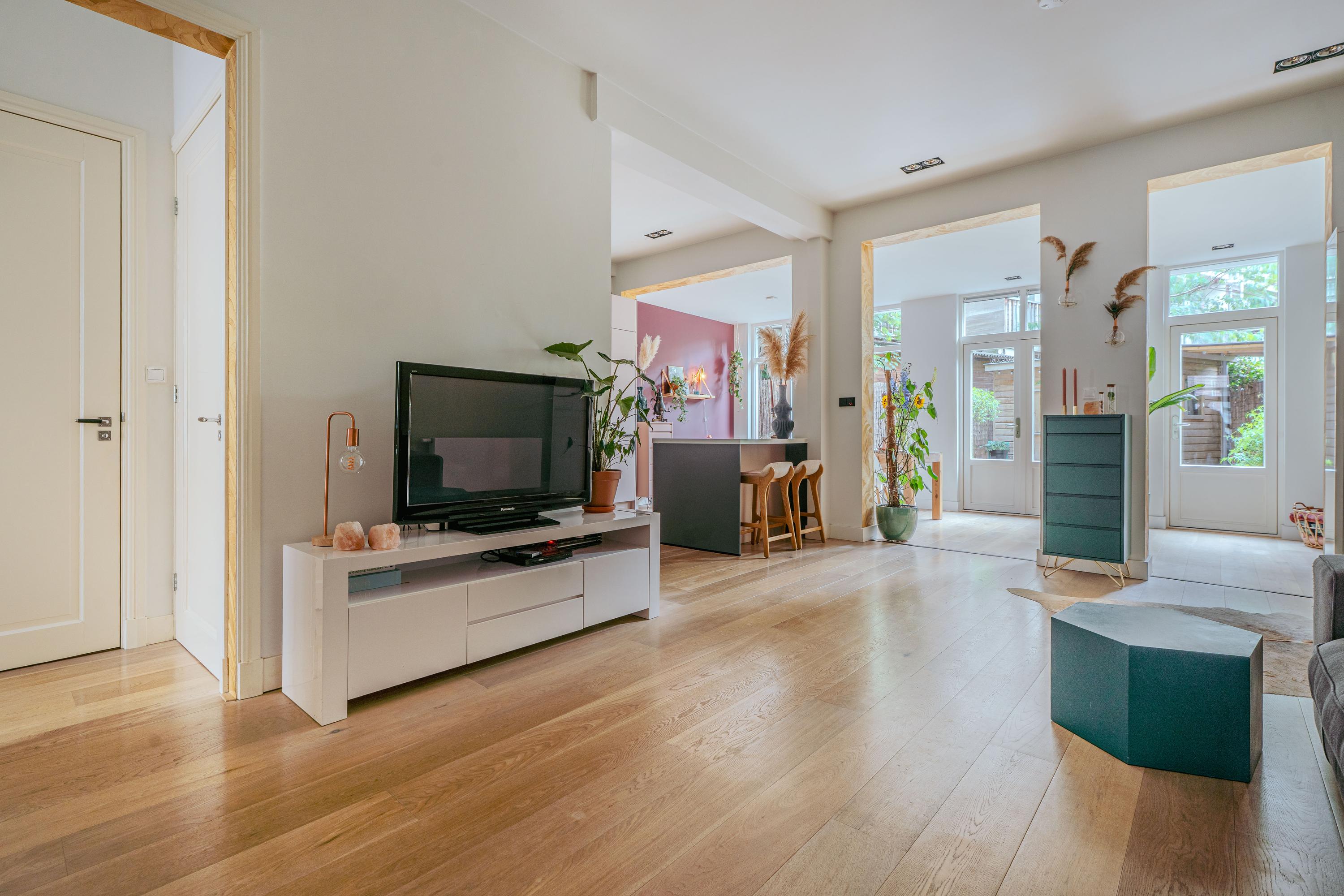 Apartment Amsterdam with private south facing garden offers a refined urban retreat in the heart of De Pijp. With a living area of 89 m², this ground floor residence enjoys abundant natural light, thanks to large windows and a 2.5 meter deep extension with garden doors that create a seamless indoor-outdoor experience.