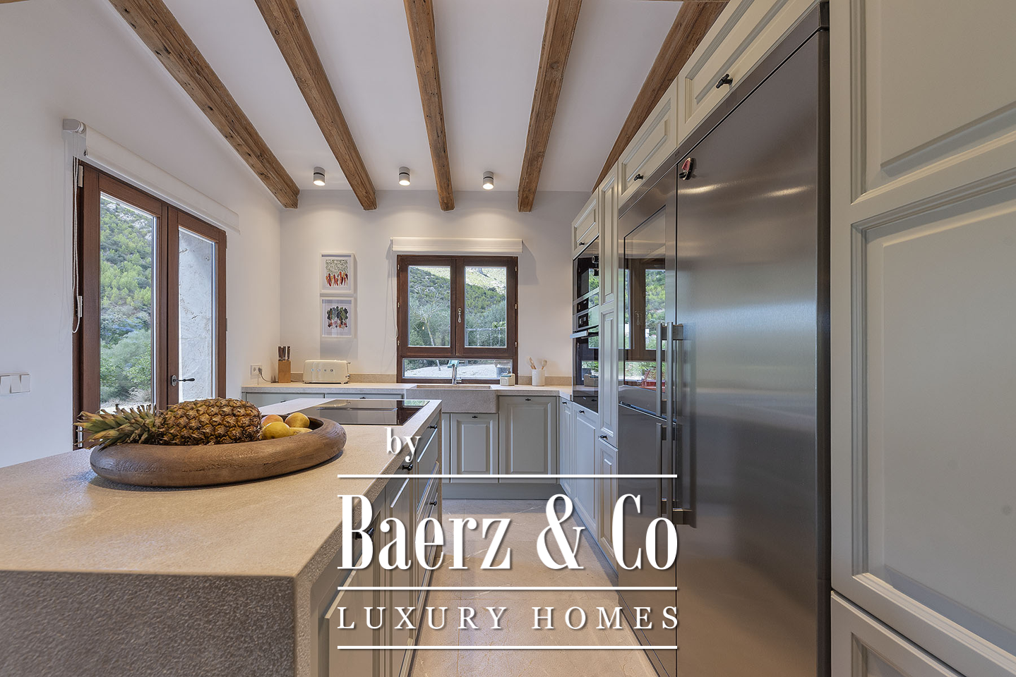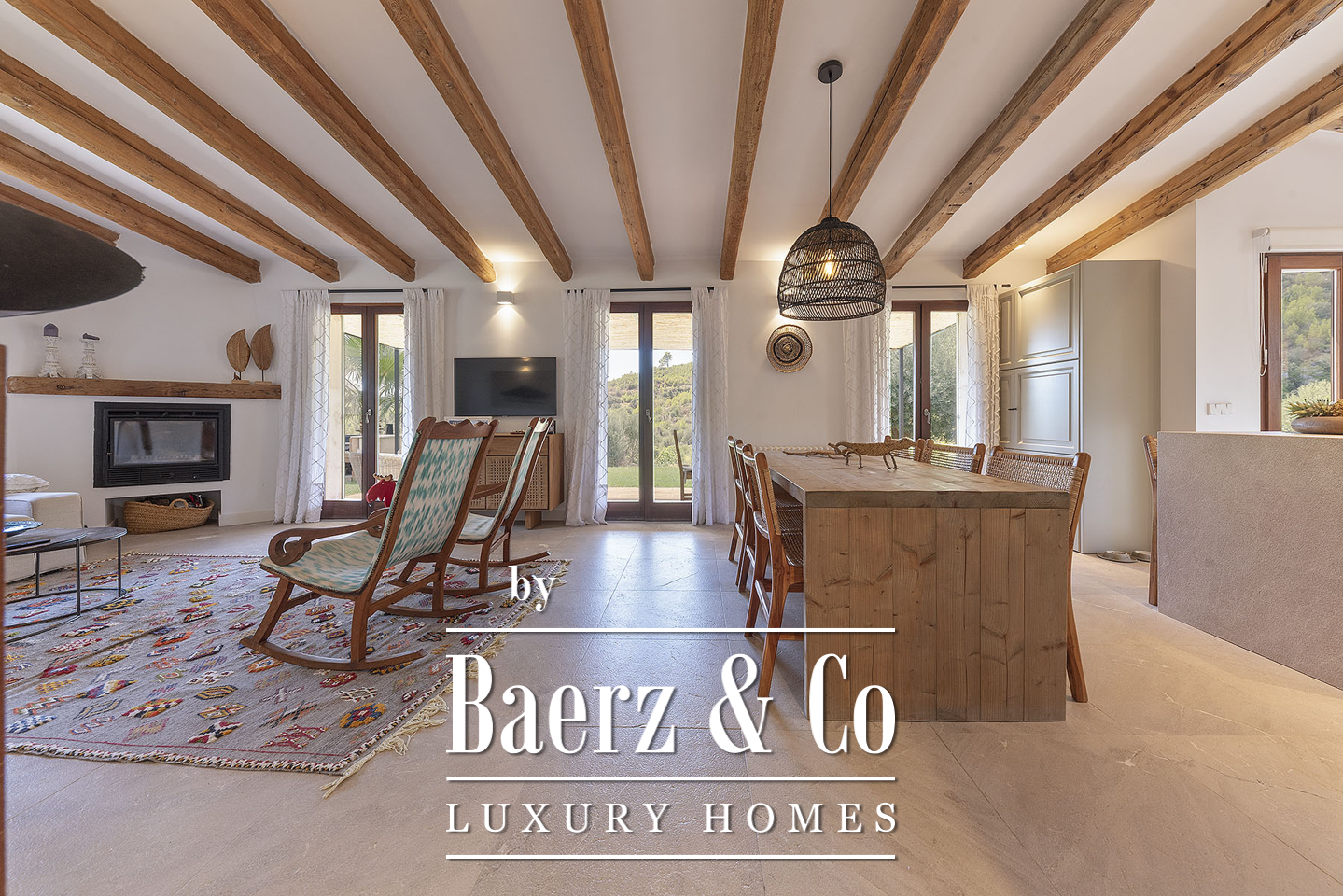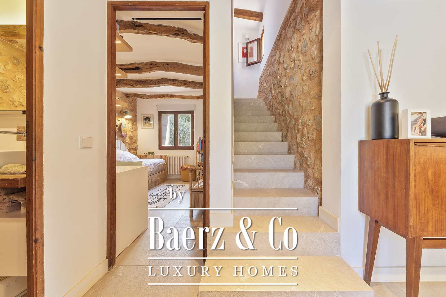 Country house Andratx presents a refined blend of rural tranquility and contemporary design. This renovated 150 m² property, set on a sprawling 10,000 m² plot, invites a sense of retreat just southwest of Mallorca, beneath the Serra de Tramontana. The country house Andratx experience is defined by luminous interiors, where a bright living room and integrated open kitchen connect seamlessly, evoking quiet conviviality. Two thoughtfully designed bedrooms and two modern bathrooms balance rustic character with present-day convenience, underscored by traditional materials and elegant finishes.