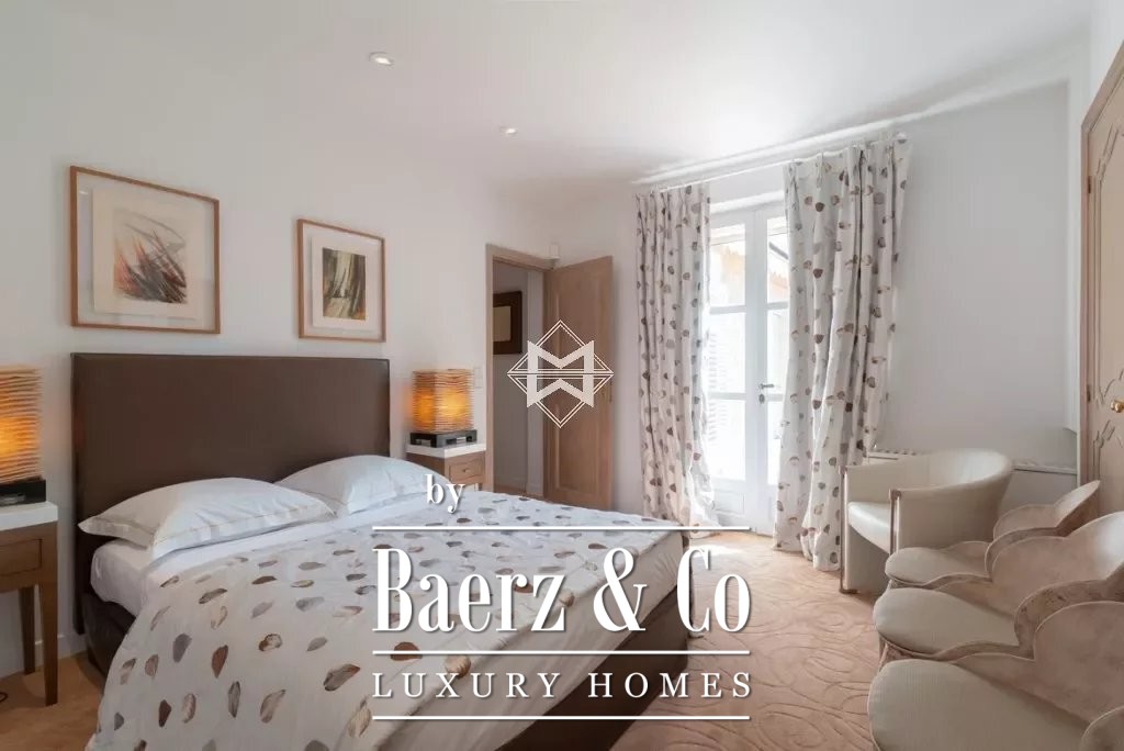 Outdoors, a landscaped garden anchors the property, featuring a heated swimming pool measuring 10 by 4 meters and a dedicated pool house for elegant leisure. Secure parking includes a garage for two cars and two additional spaces, supported by an alarm system and video security. This is a residence attuned to both comfort and discretion, quietly situated within reach of world-class amenities and the coastline.