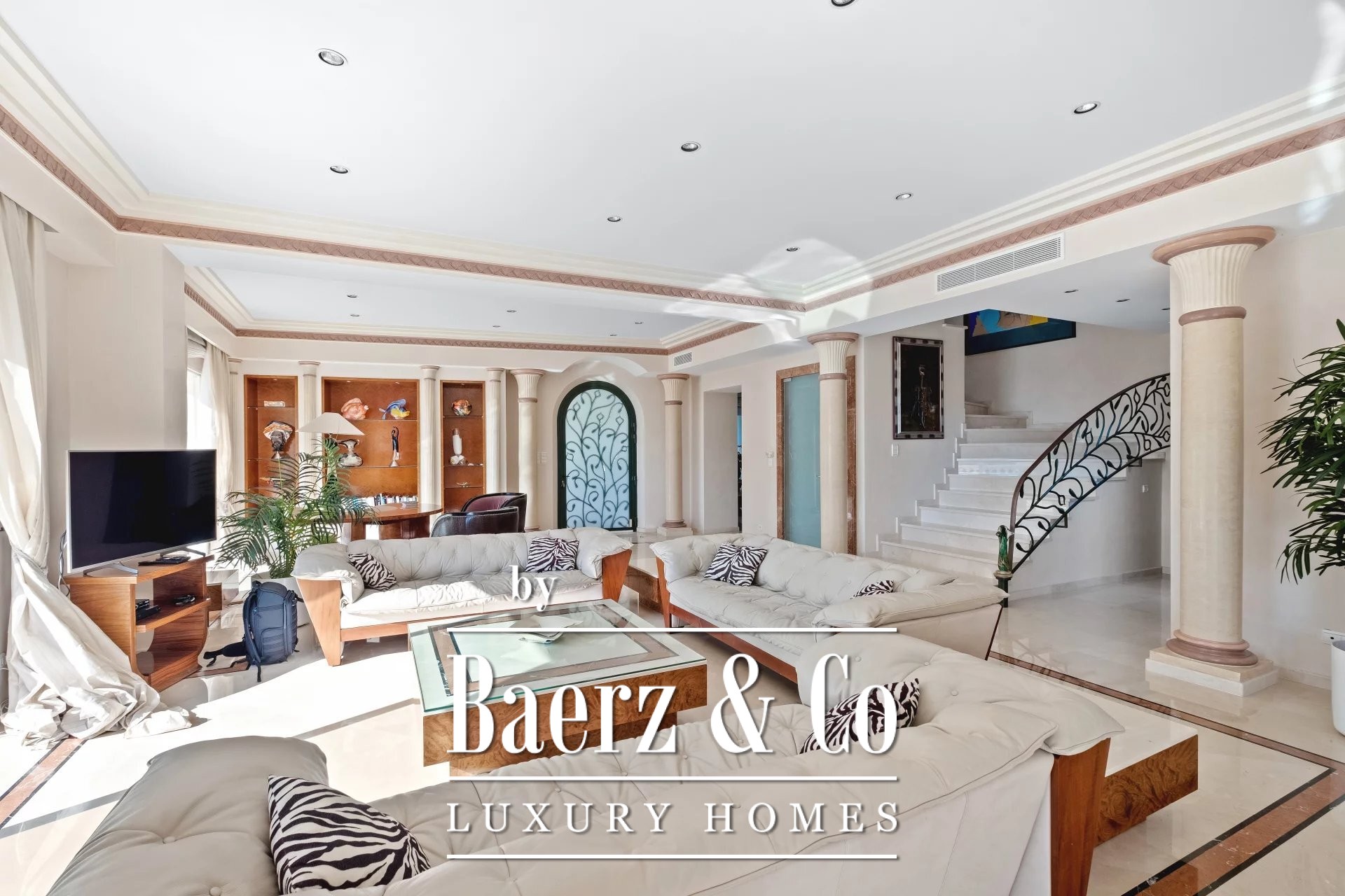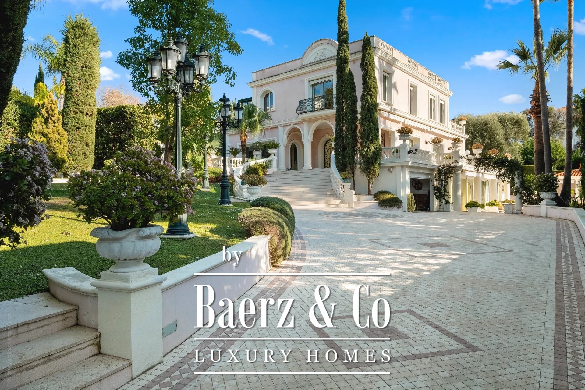 Villa Antibes occupies a discreet position a short distance from the sea and Port Gallice. This villa in Antibes extends across 395m2 of living space, elegantly situated on a 2410m2 plot, inviting both privacy and openness. The main level offers a double living room where the lounge, dining area, and office merge seamlessly, all leading to a terrace that frames sweeping views of the sea, mountains, and harbor.