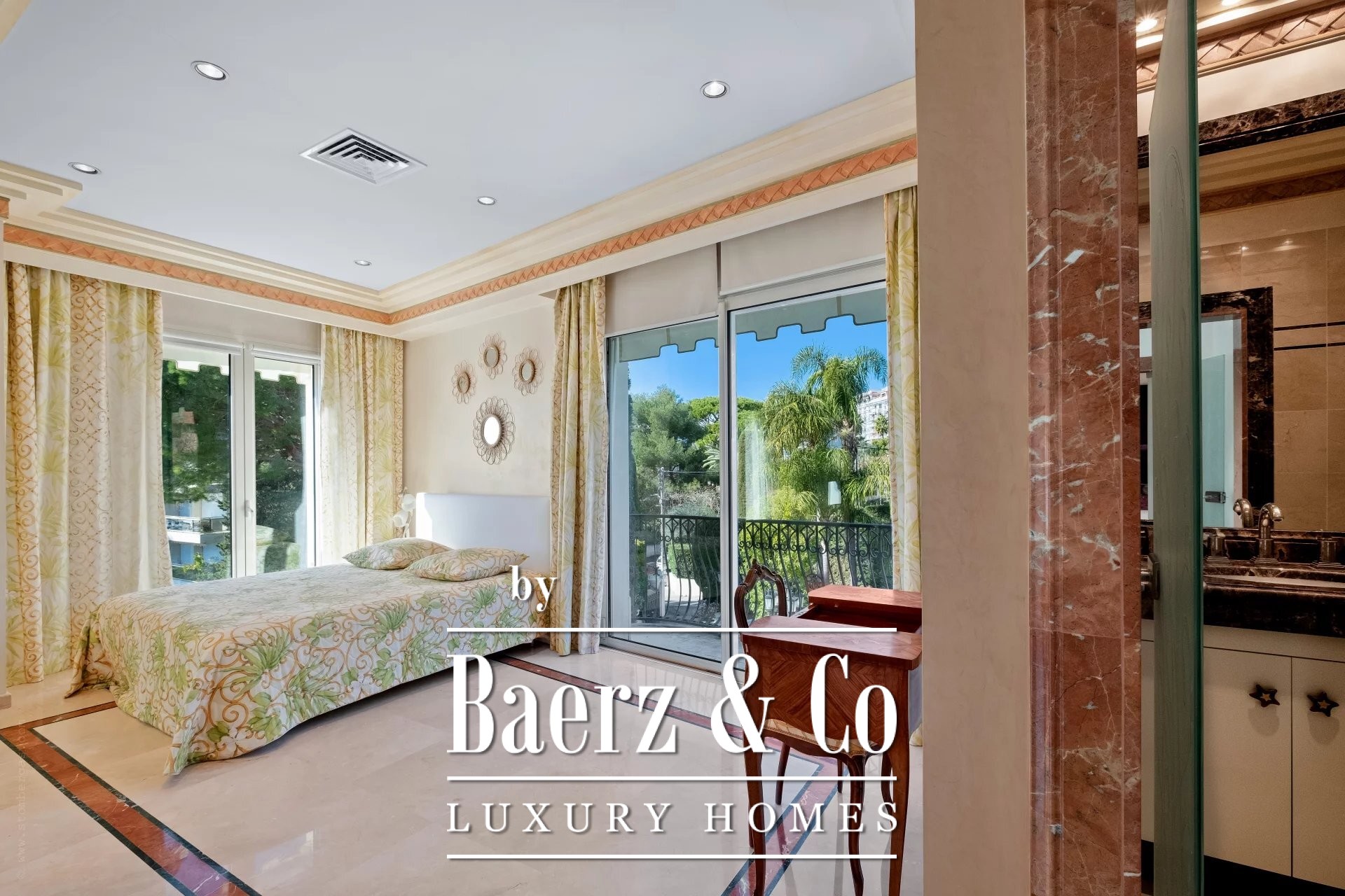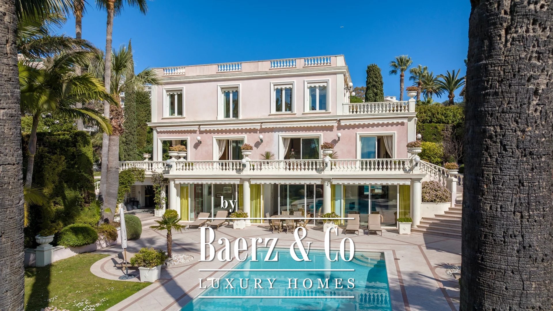 Outside, the grounds are meticulously landscaped around a swimming pool and pool house, each overlooking the sea. Multiple parking spaces and a garage, along with amenities such as air conditioning, double glazing, alarm, video security, and outdoor lighting, reinforce a sense of discretion and comfort, making this property a rare opportunity on the Riviera.