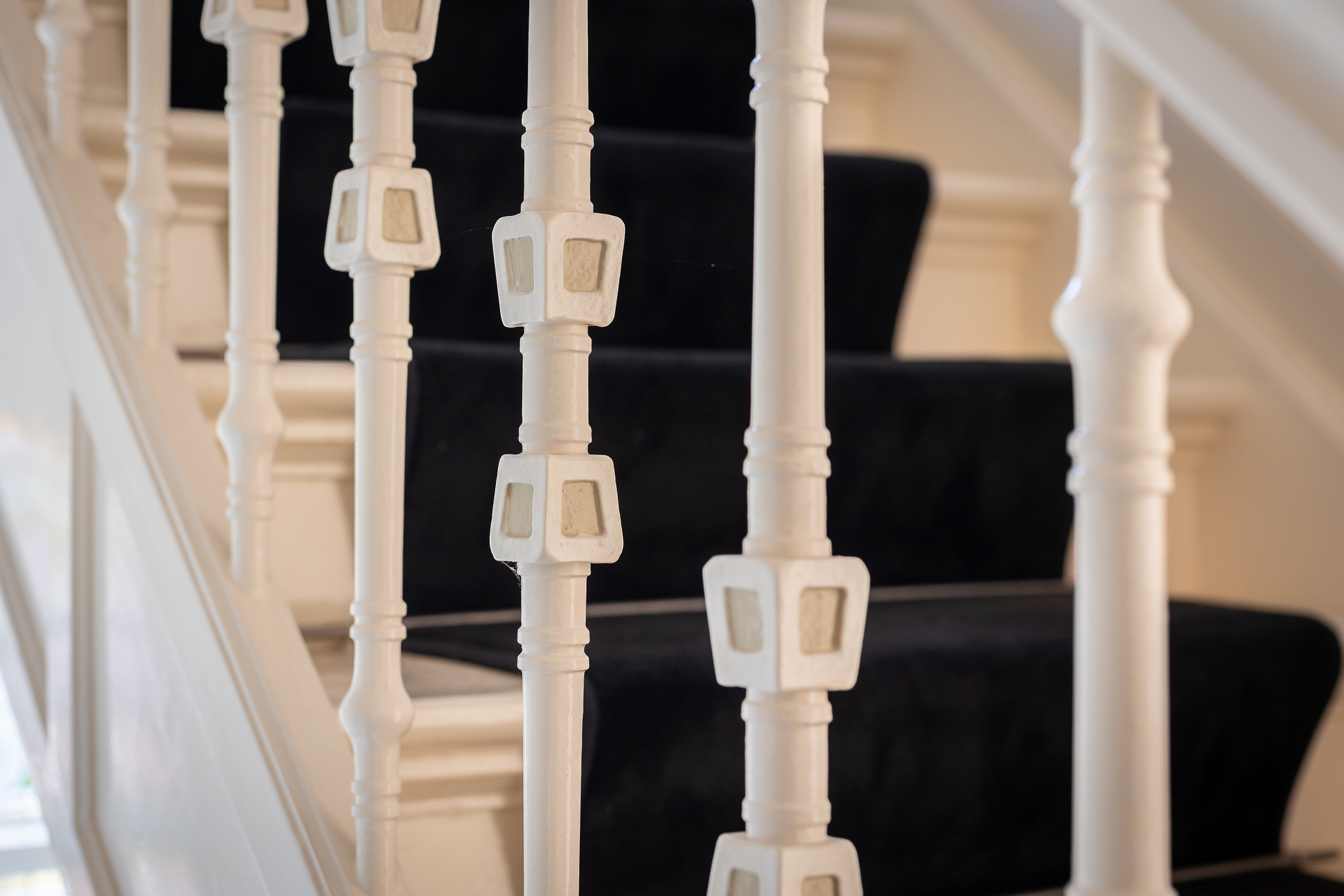 To the left of the hall is a spacious study, ideally situated at the front of the house, with a unique oil-painted ceiling in original colours. This room offers tranquillity and character, perfect as a home office or study.
