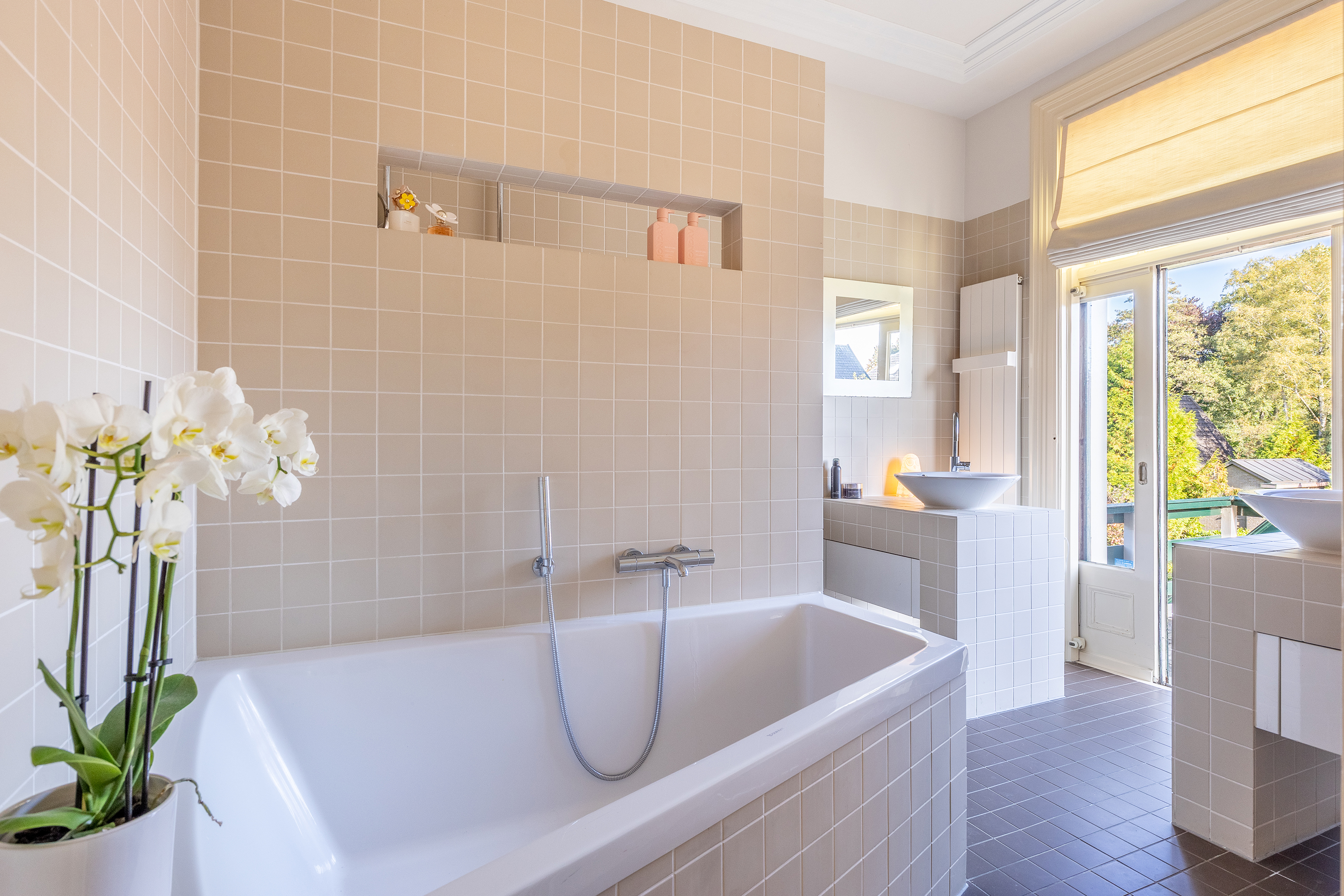 This villa is located a stone's throw from the Oranjepark and in the protected town and village conservation area 'De Parken'. The centre of Apeldoorn with its shops and amenities is within walking distance, as is the railway station. Schools, sports facilities and the nature of the Kroondomeinen are all within easy reach. Apeldoorn, the green city on the Veluwe, is located in the middle of the Netherlands, near the A50 and A1 motorways. This provides good connections to Amsterdam, Amersfoort, Deventer, Hengelo and Germany.