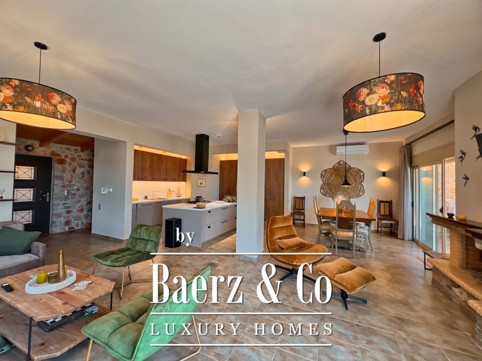 This stone villa Archaia Epidavros presents 260 m² of refined living on a private 1,345 m² plot, set quietly among olive groves and proximate to the beaches and revered ancient theater. With architecture rooted in local stone and modern techniques, the villa balances authenticity and contemporary comfort.