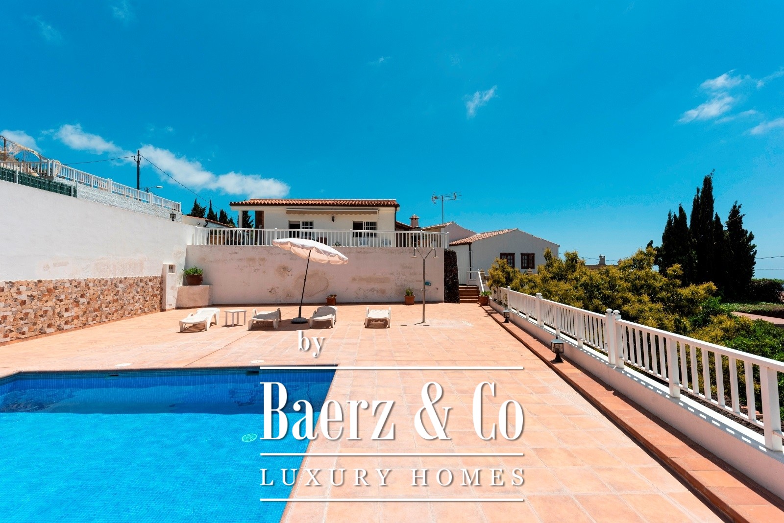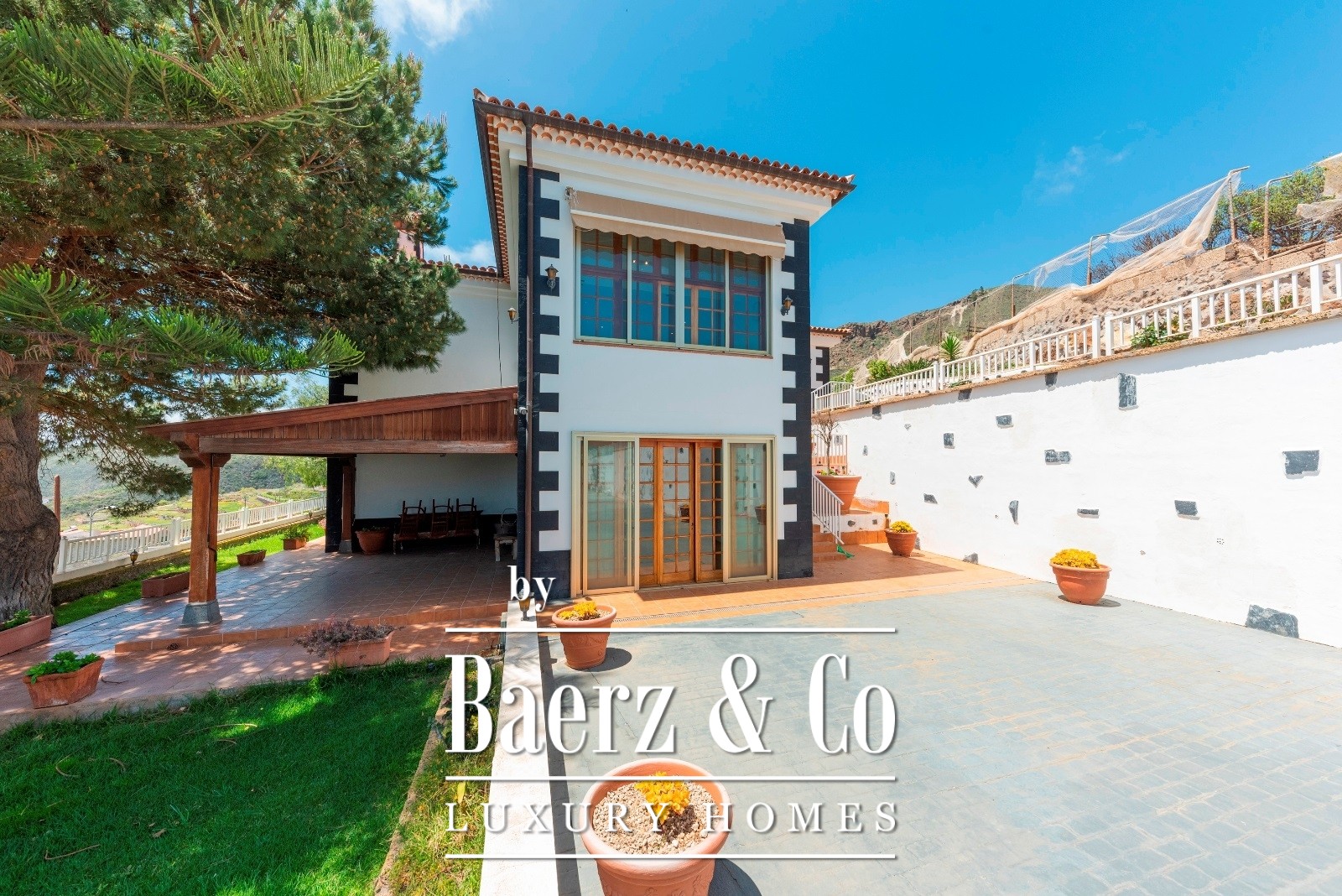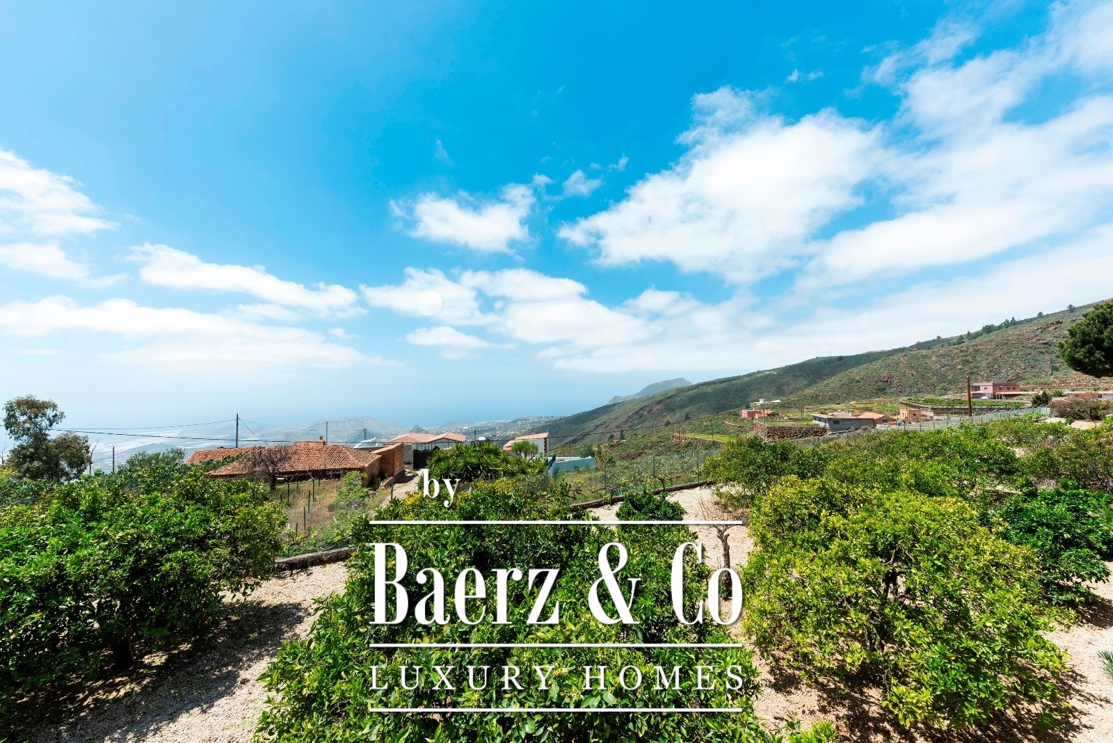 Country house Arona presents a rare opportunity in the tranquil hamlet of Jama, situated on the southern slopes of Tenerife. This 207 m² estate rests on a 7,500 m² plot, framed by mountain and countryside views that invite a slower pace of life. The main house offers three luminous bedrooms, two well-appointed bathrooms, and a flowing living and dining area, all finished with warm parquet flooring. A fully equipped kitchen and solana further enhance the comfort. Gardens and terraces unfold from the main residence, with crafted spaces for outdoor dining, a bodega, and a poolside area ideal for leisure.
