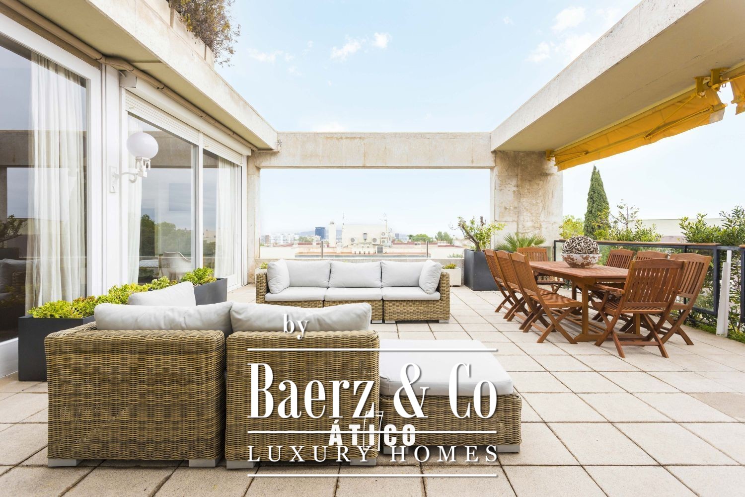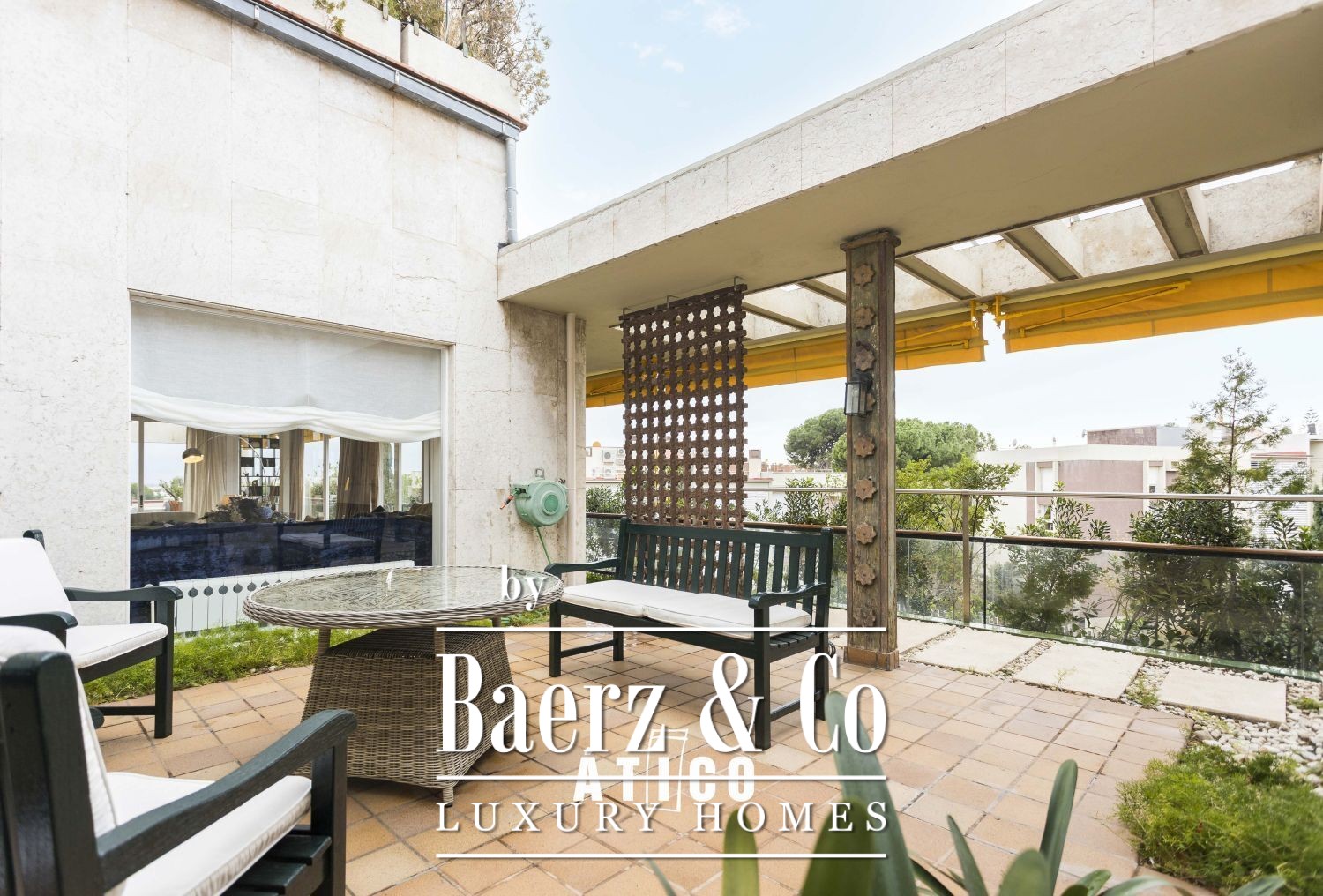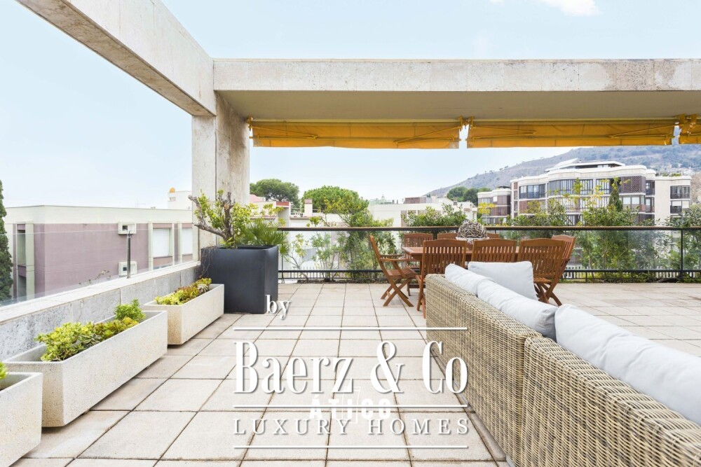 This attic apartment Barcelona offers a refined living experience in the city's sought-after upper area. Spanning 518m² of interior space and framed by an 80m² wraparound terrace, the residence balances generous scale with rare urban privacy.