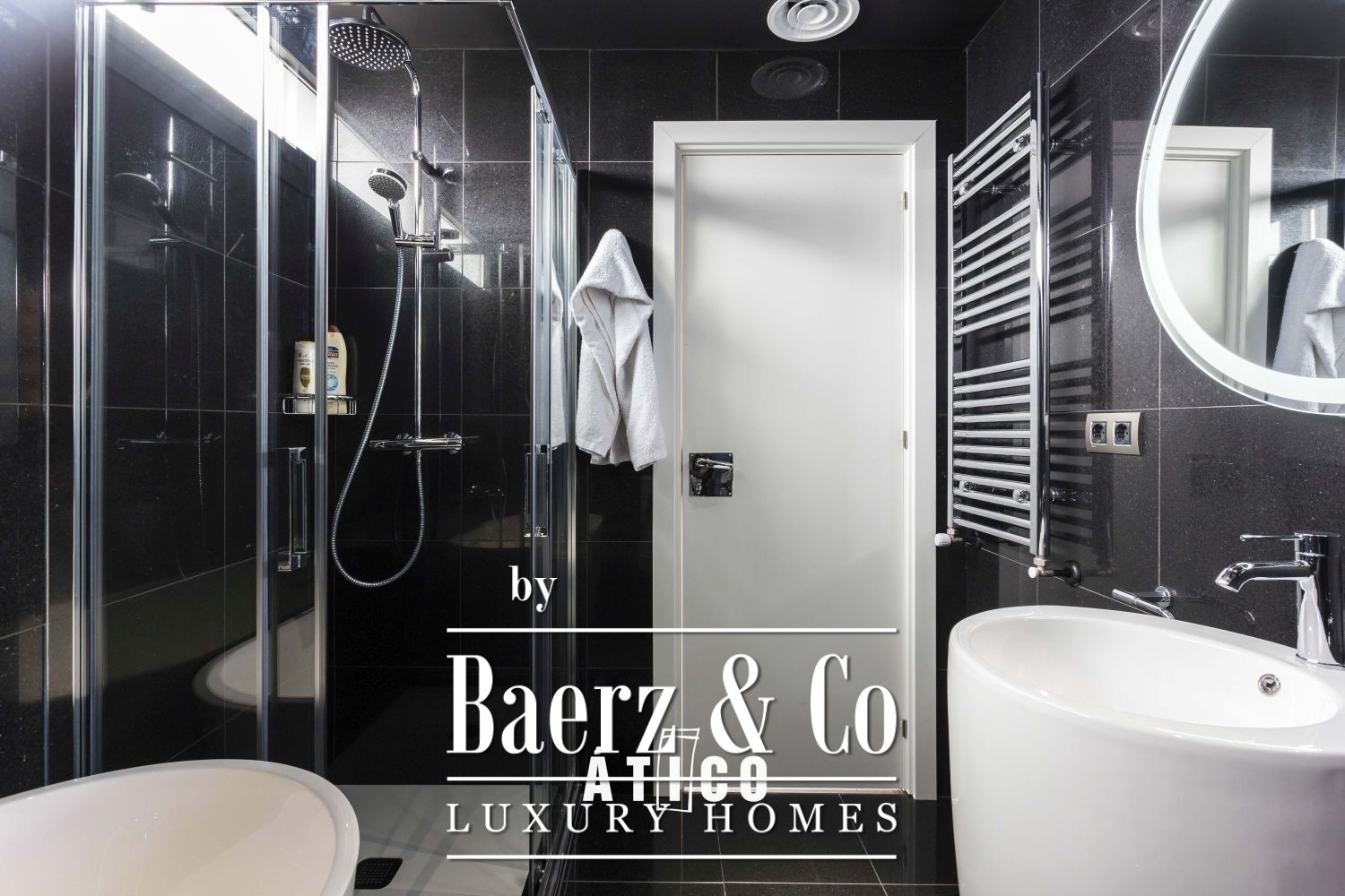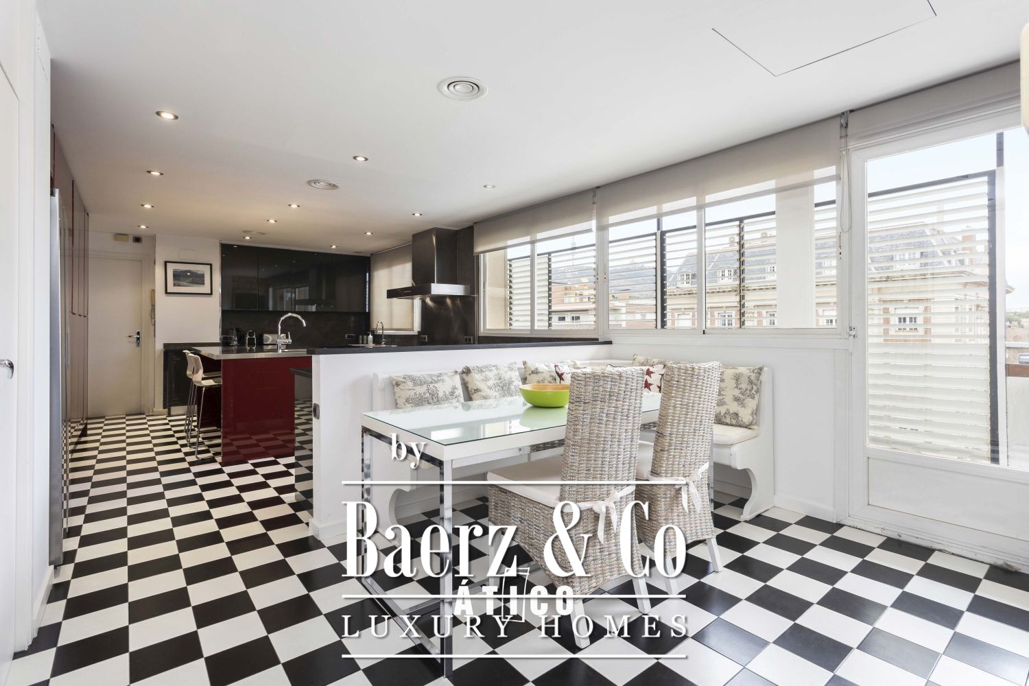 Air conditioning by zone, radiator heating and comprehensive wifi offer comfort and connectivity. Designer furniture, warm finishes and views over Barcelona affirm the sense of considered urban living in this exceptional attic apartment Barcelona.