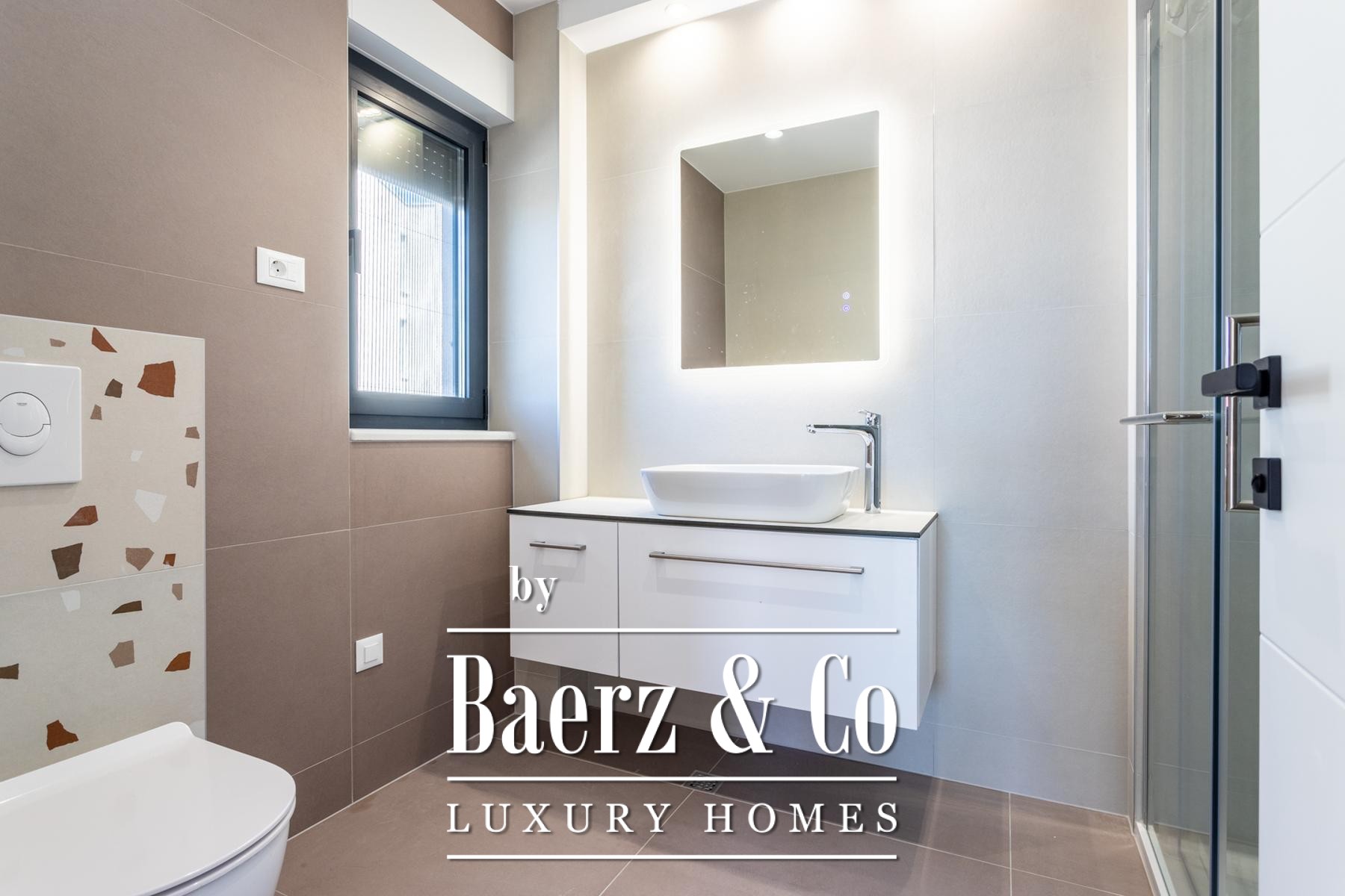 The structure is accessed through two separate side entrances, providing flexibility for private residence or discrete guest accommodation. The basement, shaped for adaptable use, offers its own bathroom and 62.88 m² of space, suitable for entertaining or as an additional living area. The ground floor integrates kitchen, dining and living zones in an open plan of 60.12 m², complemented by a bathroom. Ascending, the first and second floors each feature two bedrooms, a bathroom, and outdoor vantage points—one with a balcony, the top level with an expansive terrace—both offering calming sea views.