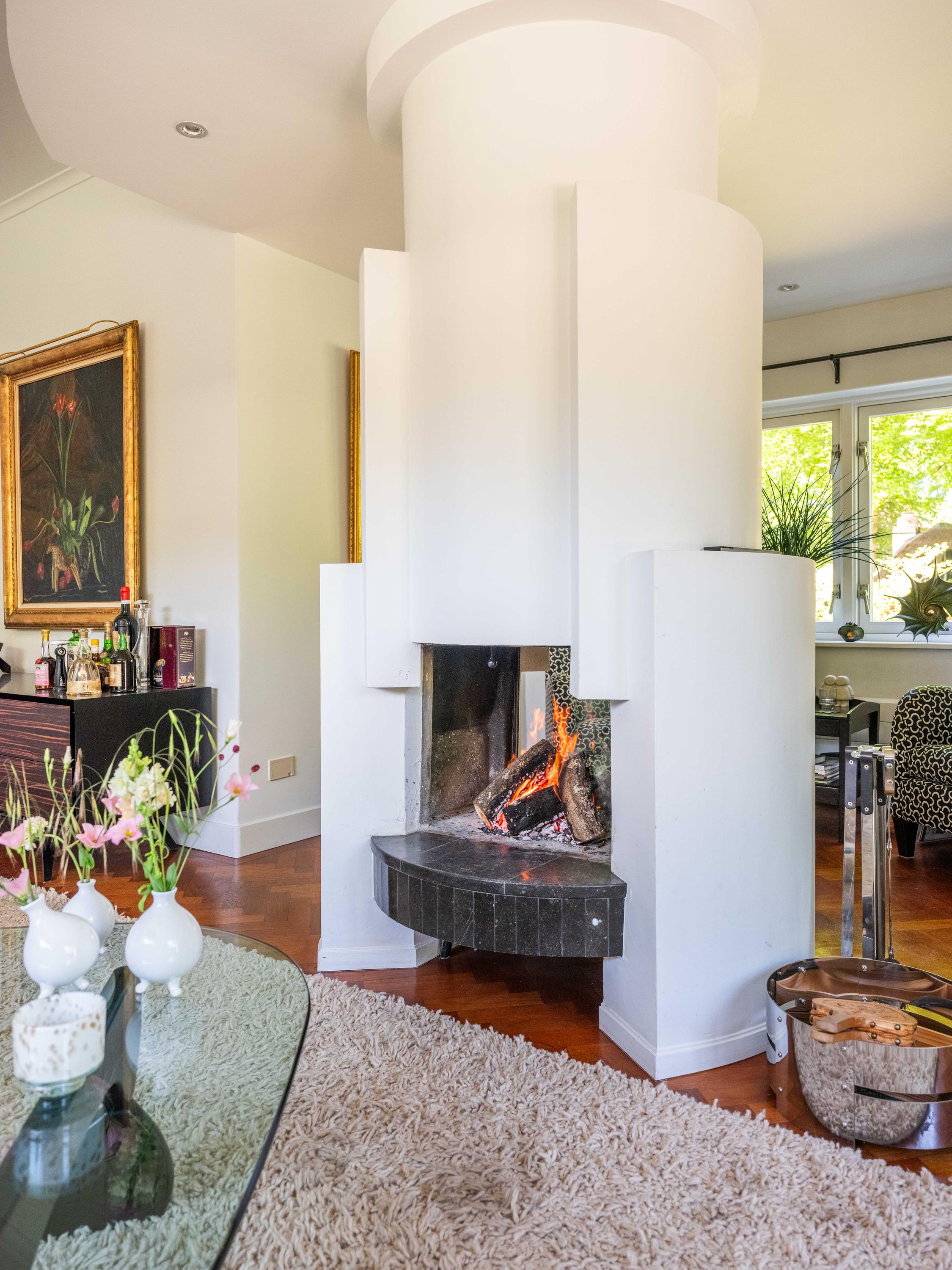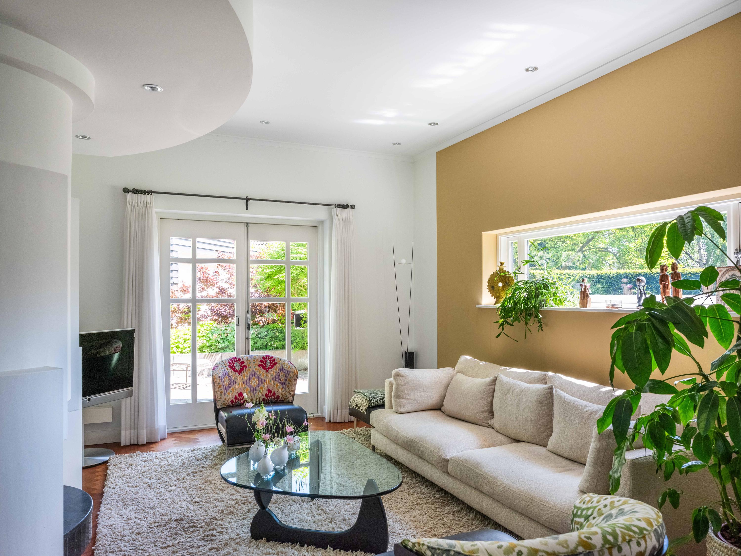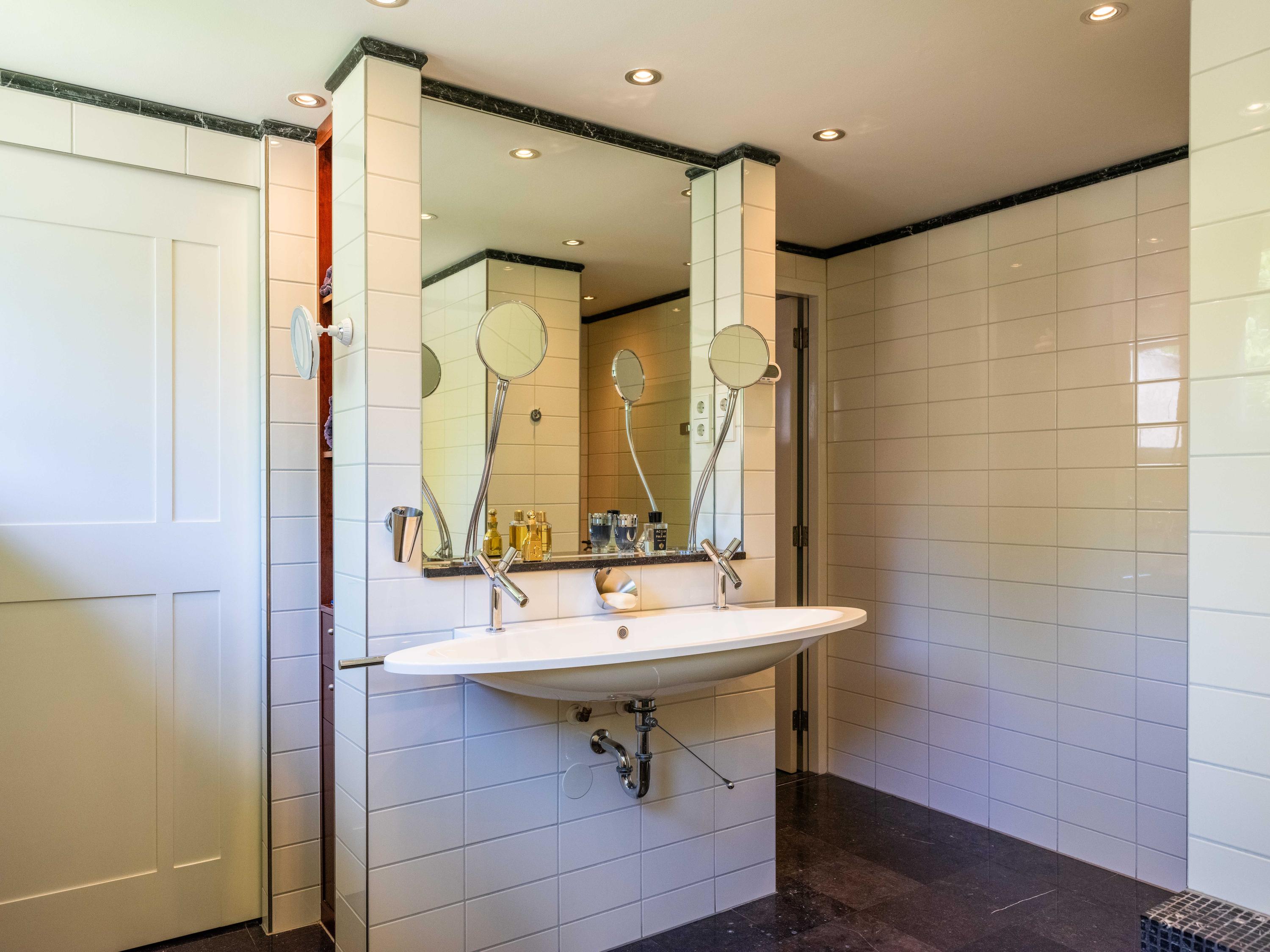 The beautiful park garden with privet hedges, flower beds and impressive trees surrounds the villa. Next to the villa is a fully insulated shed built in the same style, which can be used to store bicycles, garden equipment, etc. It also houses the central vacuum cleaning system and the pump and watering system for the garden.