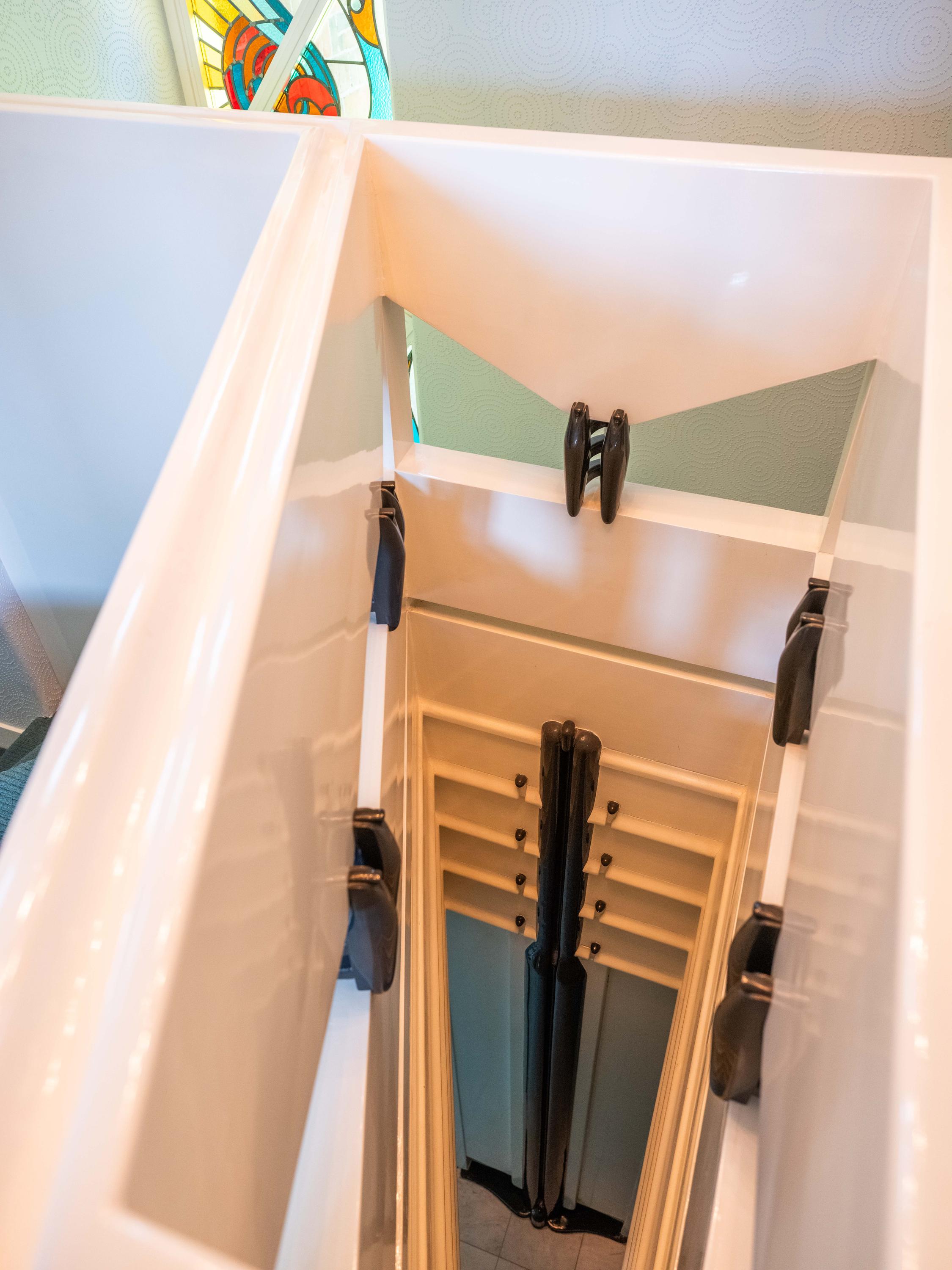 There is also a second smaller bathroom with a sink and shower on the landing.