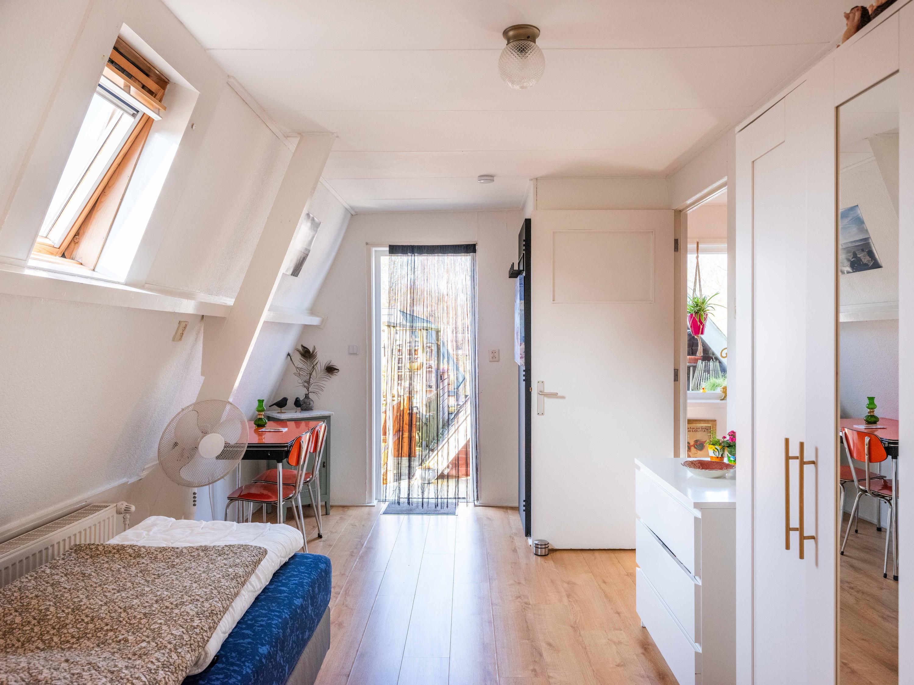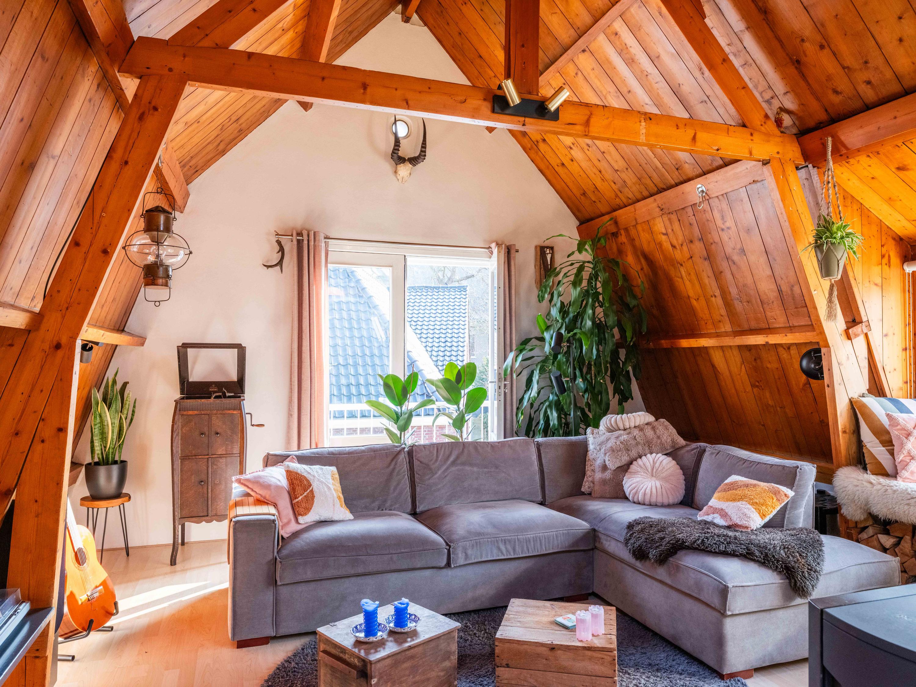 The upstairs apartment (approx. 76 m²) features a very spacious living room with a French balcony and views of Bergen’s two churches. The charming dormer window was fitted with a new frame and insulated glass in 2023 and is currently used as a cozy sitting area. The centrally located wood-burning stove not only creates atmosphere but also provides a pleasant and comfortable indoor climate.