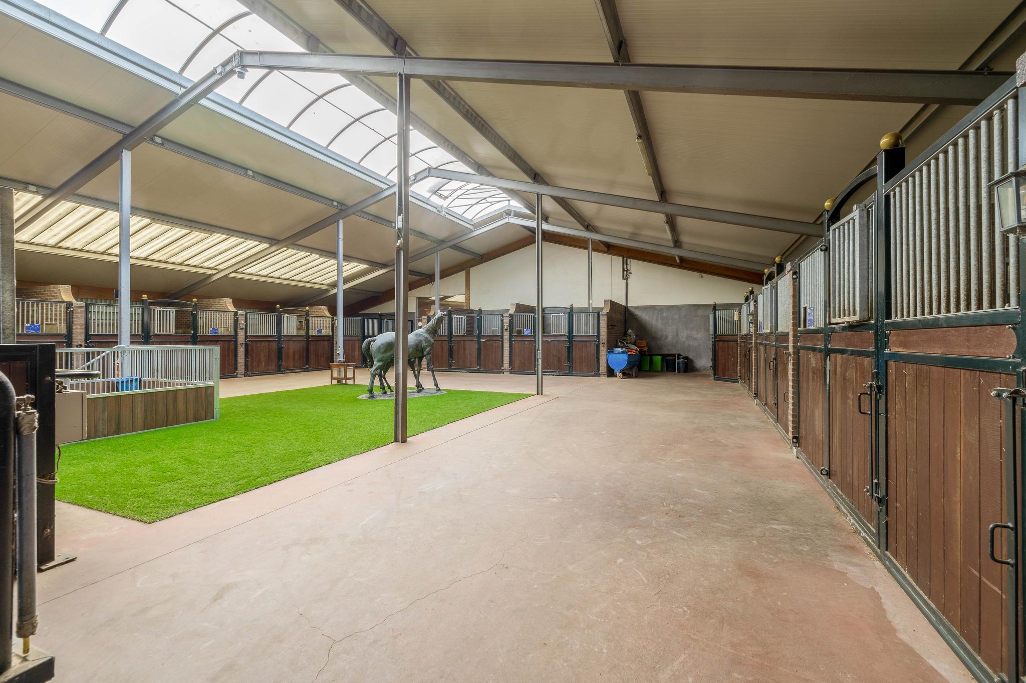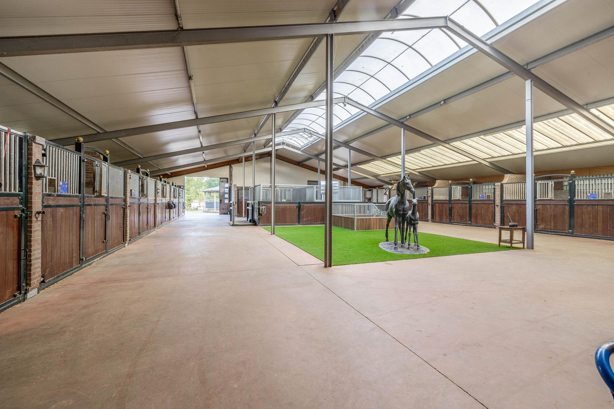 The equestrian accommodation includes a detached riding hall with an indoor arena (approx. 20mtr. x 60mtr), a horse stable with a reception area and a total of 31 horse boxes divided over 2 stable areas, an office area, workshop and an adjoining flat.