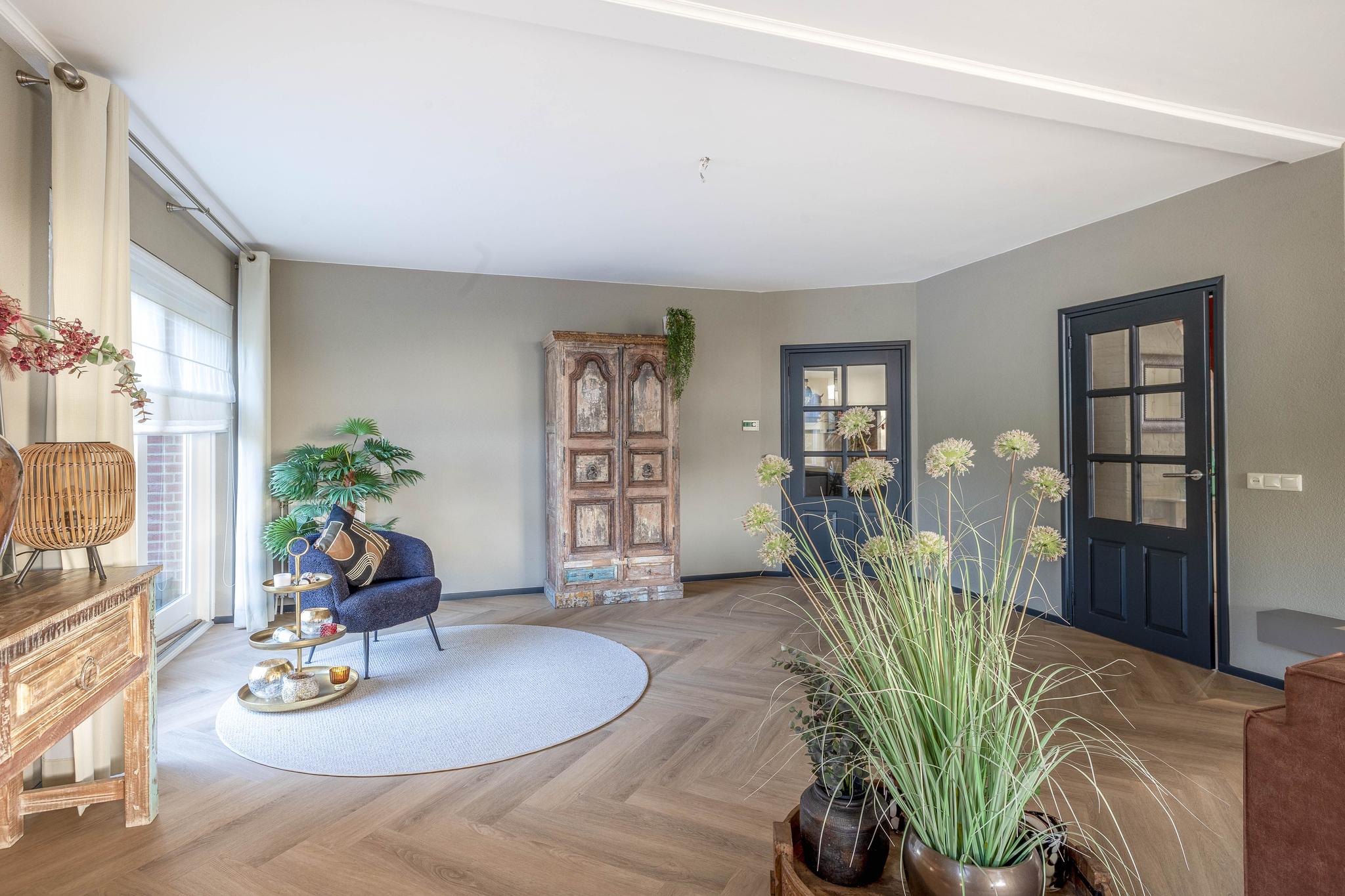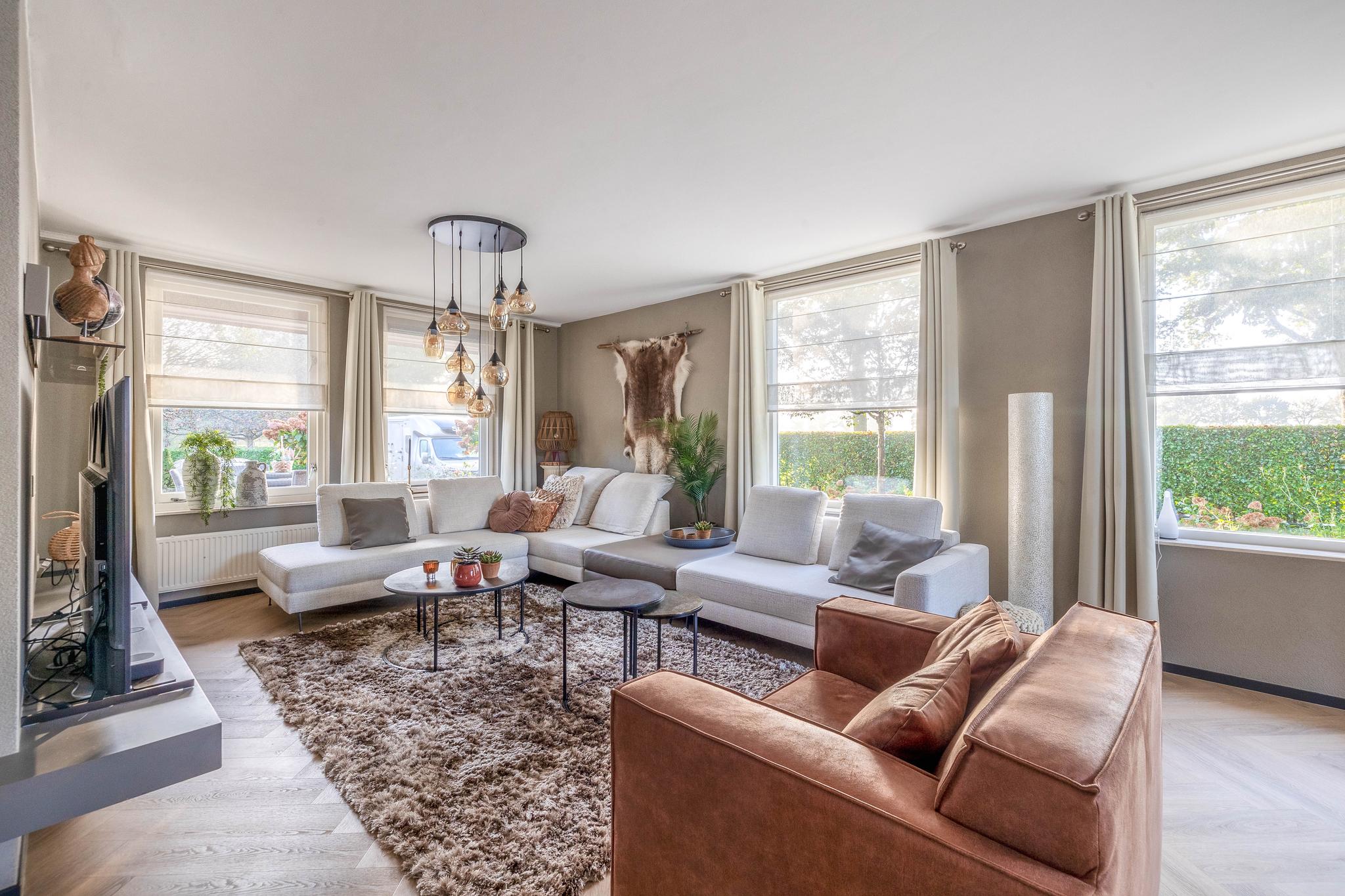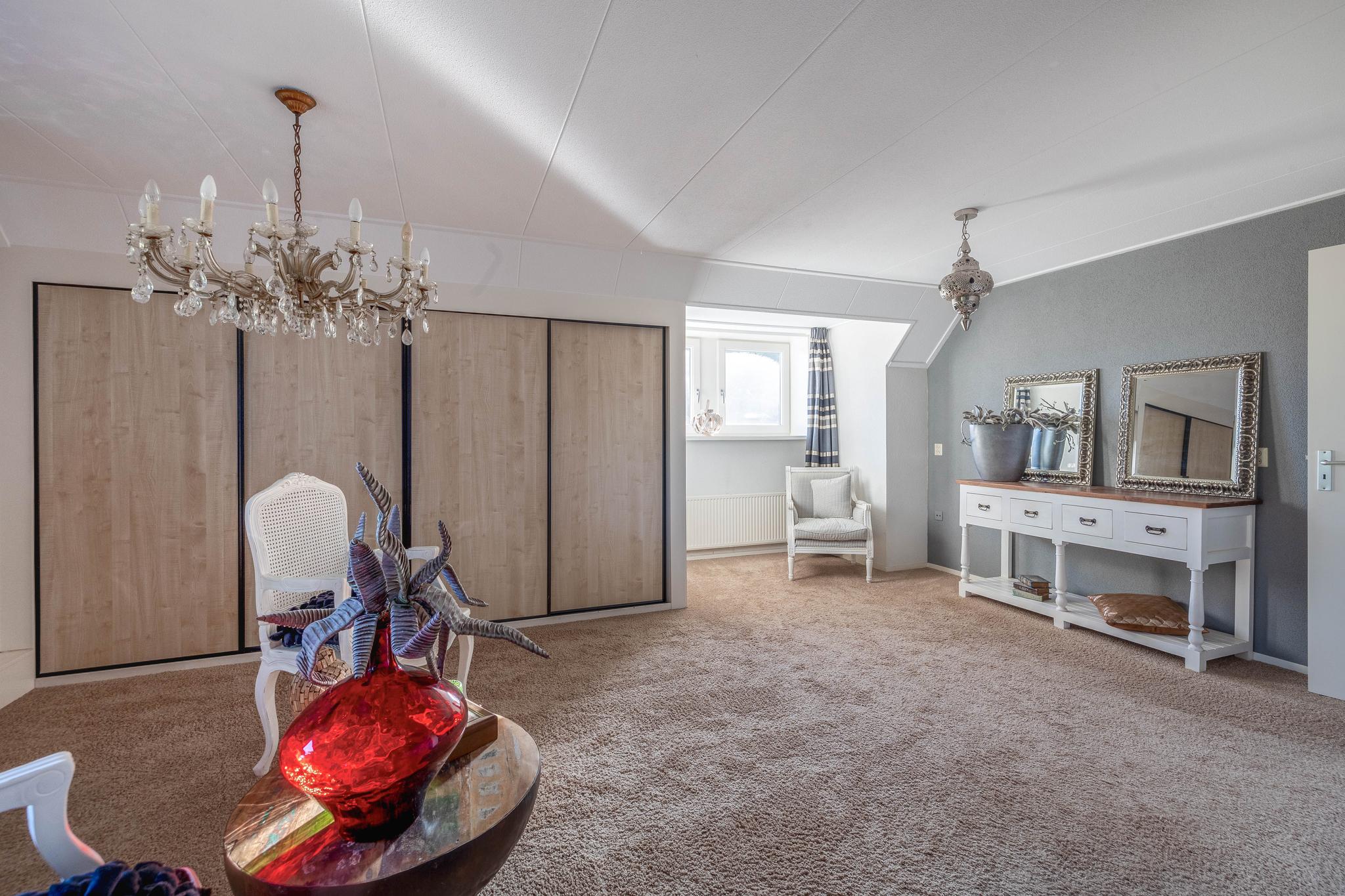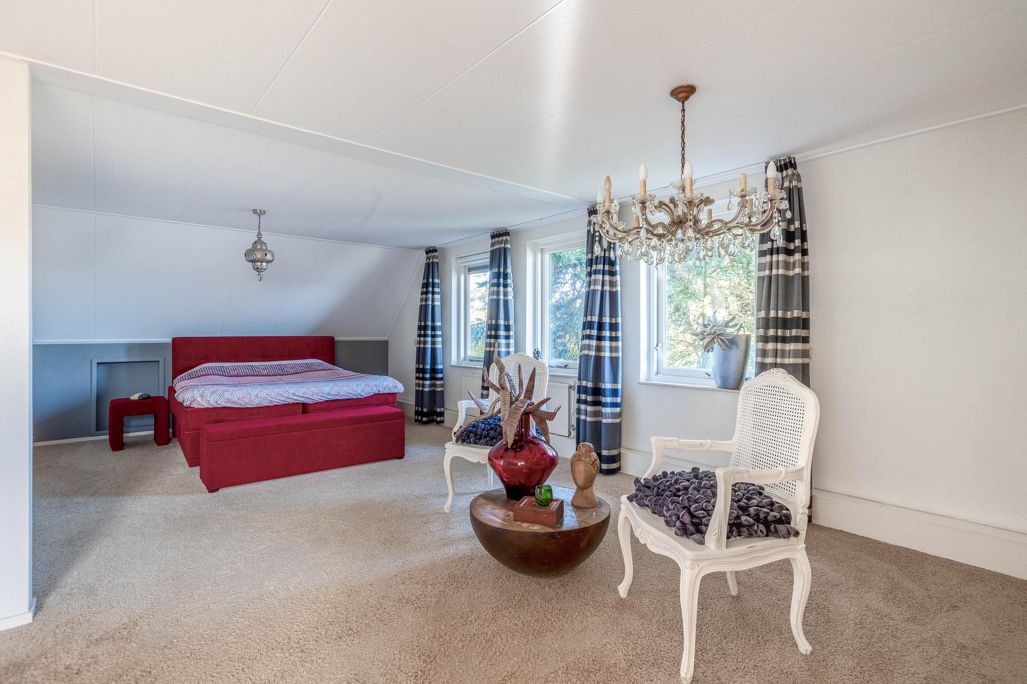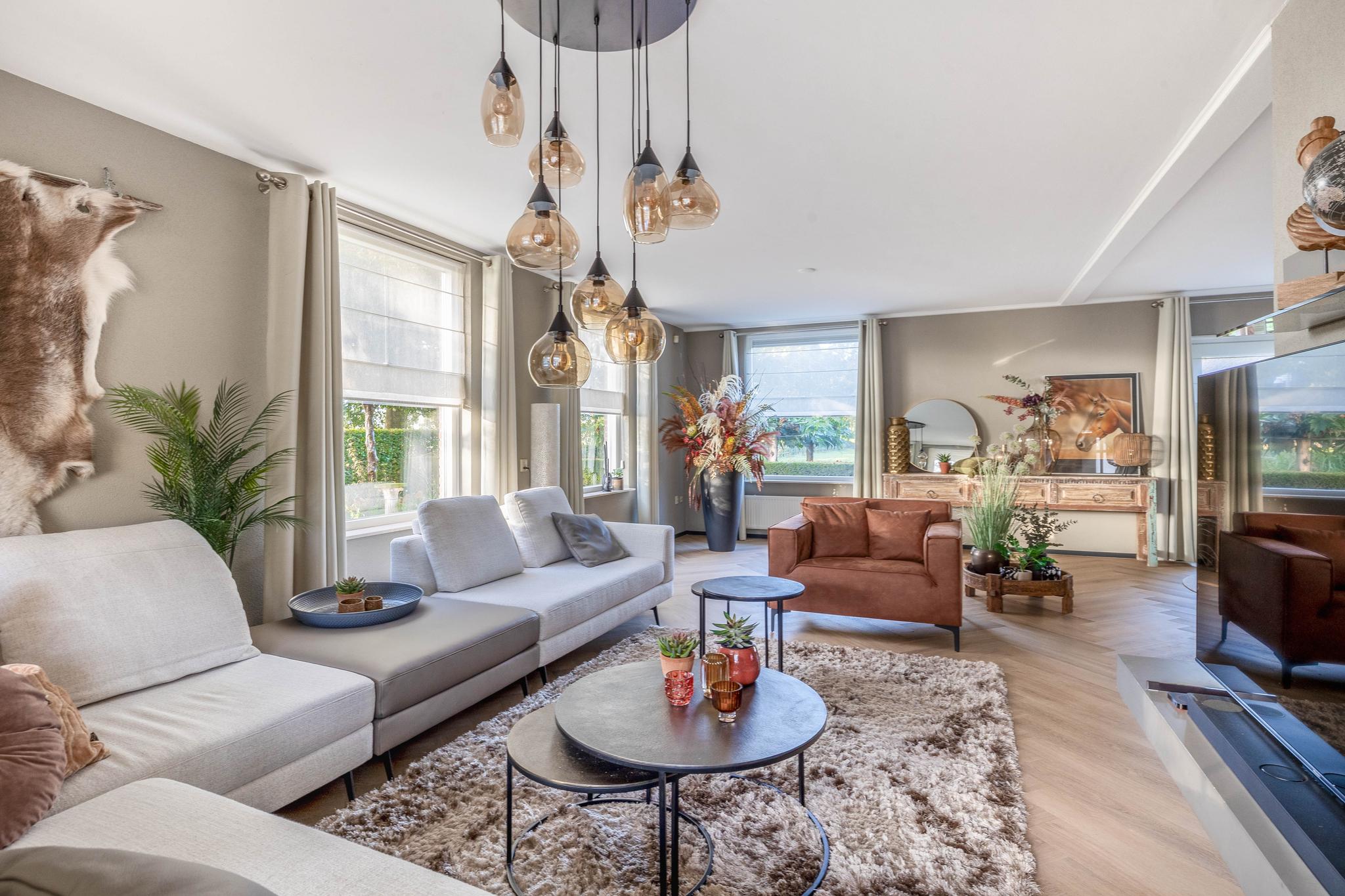 The garden surrounding the house is beautifully landscaped and well maintained. The garden is laid out with borders with perennials, trees, lawn and several terraces. At the front is a terrace, at the rear the terrace has a very beautiful and attractive canopy. This canopy is made of oak and has a glass wall. The roof is covered with reeds. The terrace offers beautiful views of the meadows. In short, a lovely place to be! A little further on is an aviary and another covered terrace. From here, too, there is a beautiful view of the meadows.