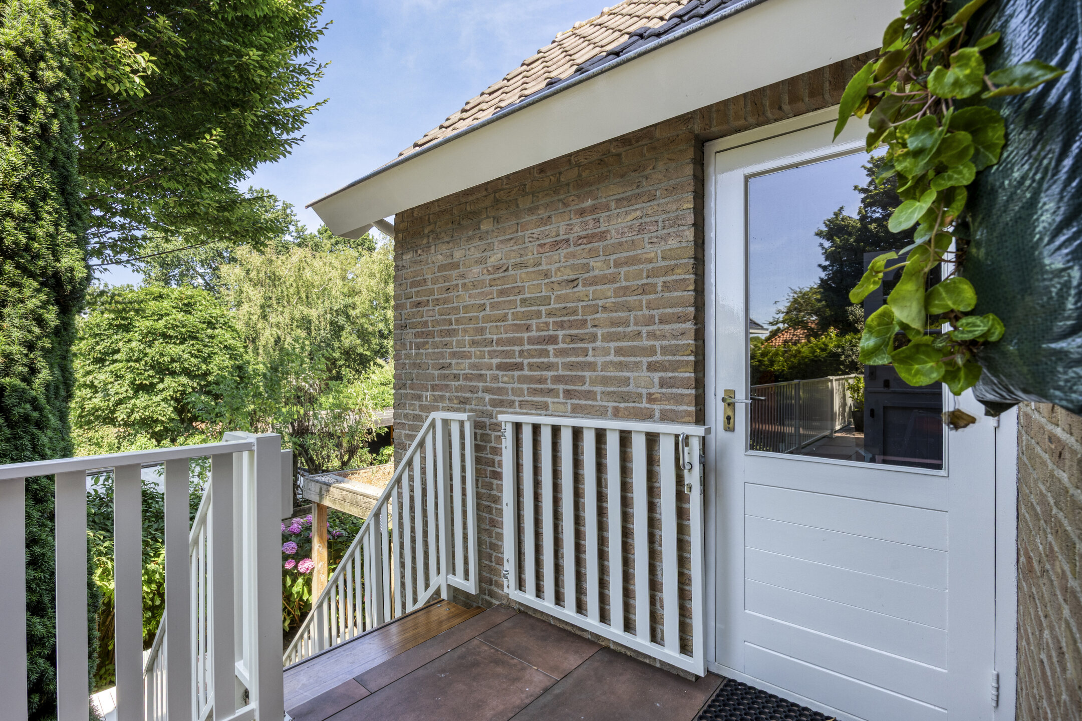 A large driveway with electric charging point introduces the property, complemented by a private garage. Expanses of glass and a serene conservatory suffuse the main living area with light, where a wooden floor and open fireplace create a welcoming atmosphere. The kitchen, with its modern island and extensive built in appliances, includes features such as a climate cabinet, Quooker and steam oven. Adjacent balconies and gardens offer seamless transitions between indoor and outdoor life, with sun throughout the day and practical roll down shutters, sun awnings and twenty solar panels ensuring both comfort and efficiency.