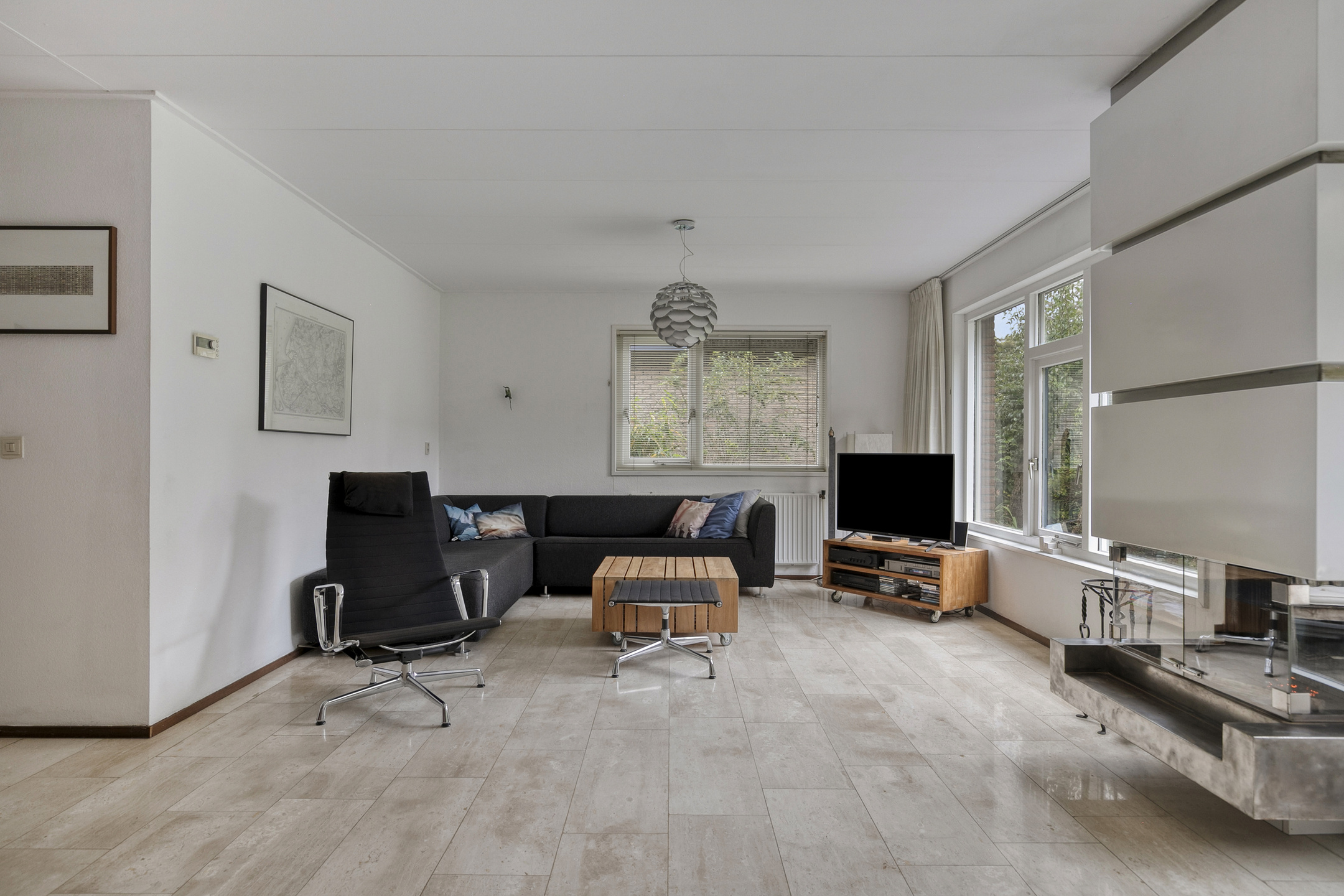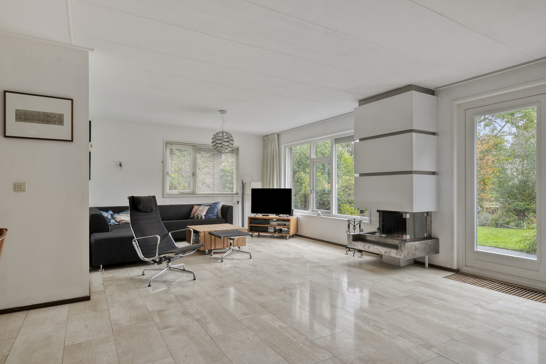 What immediately stands out are the large windows, which provide abundant natural light. The living room features a beautiful natural stone floor with underfloor heating and a cozy fireplace. From the living room, you step directly into the beautifully landscaped backyard. Facing south, the garden offers plenty of privacy and is designed with multiple terraces, perfect for enjoying either sun or shade. The waterfront enhances the open and spacious feel of this location.