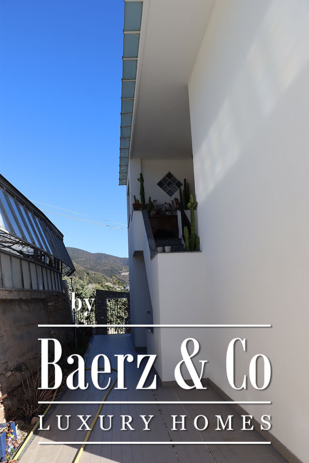 A large greenhouse sits just above the villa, ideal for a winter garden or a curated botanica. The setting ensures peace and privacy, underscored by the immediate connection to sea, land, and local character. This villa for sale in Bordighera offers both architectural substance and the ease of Italian coastal life.
