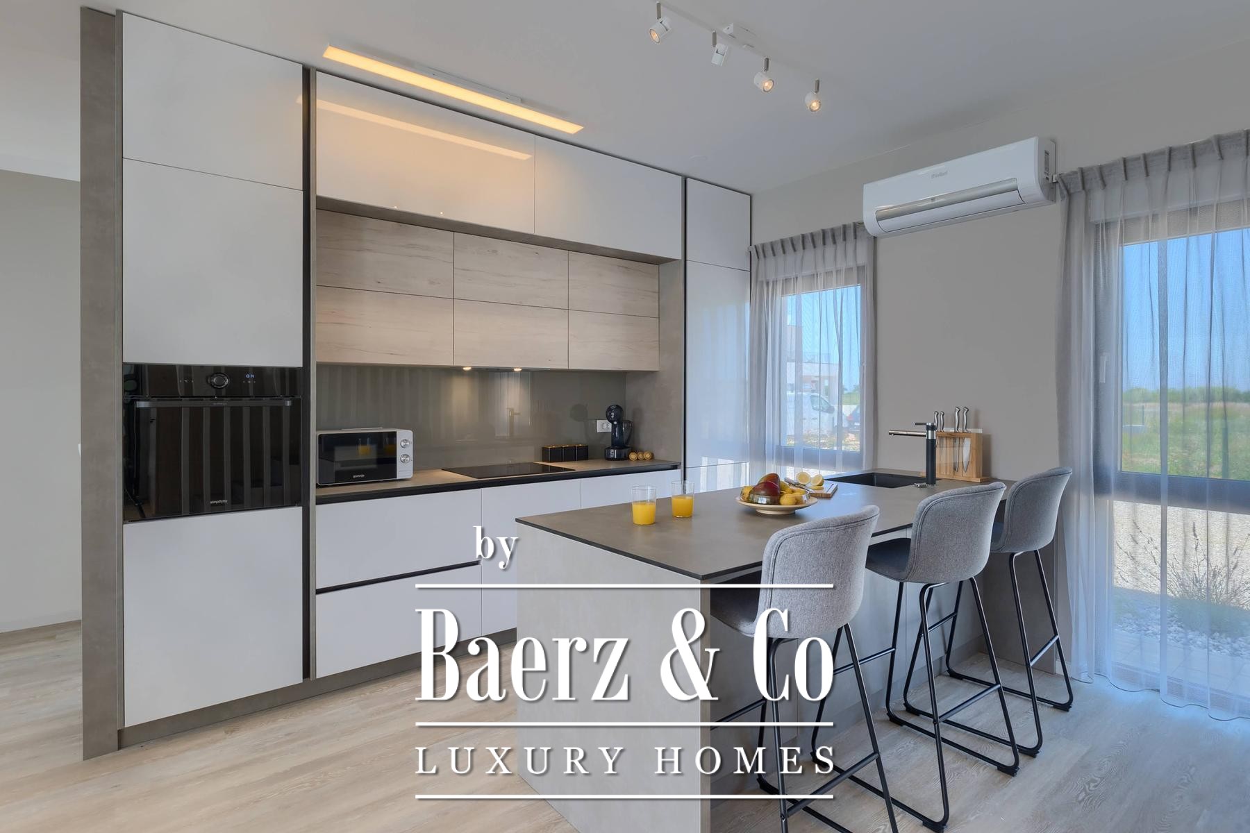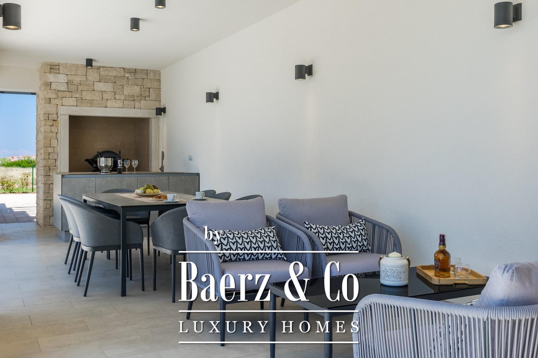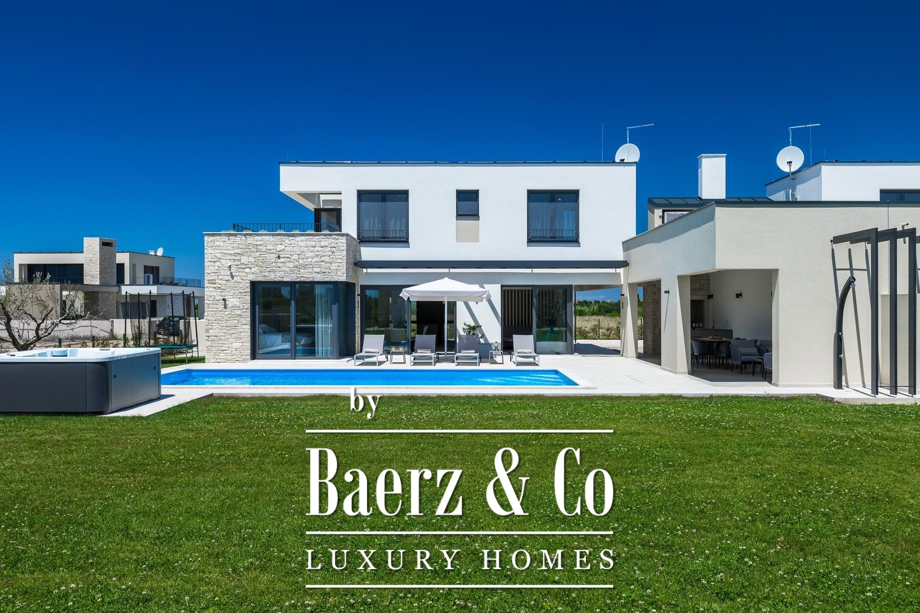 Townhouse Brtonigla stands enveloped by greenery and mature olive groves in the tranquil heart of Istria. This 264 m² contemporary villa is conceived for privacy and flexible living, offering a refined retreat suitable as a private residence or an income-generating investment. Upon entering, a fluid ground floor layout reveals a spacious open living area, a sleek kitchen, and dining room. Practical features including storage and a technical room ensure an ease of daily life, while a bedroom with en suite bathroom enjoys direct access to the pool. The guest toilet with laundry space supports functionality.