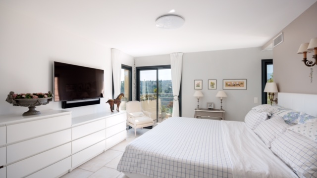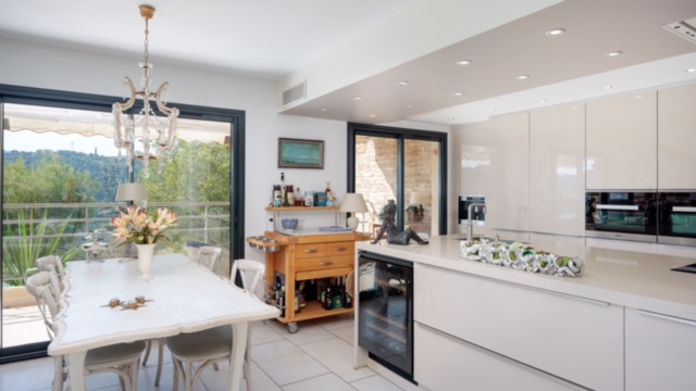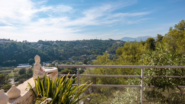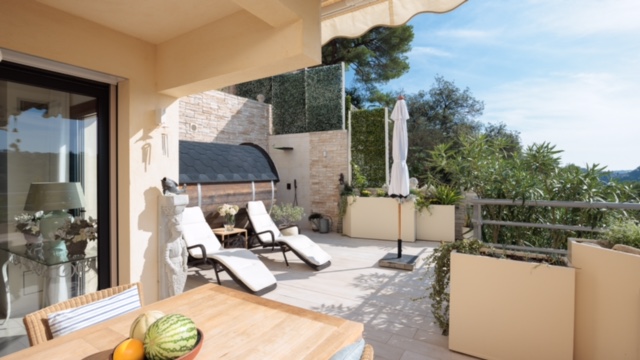 Completed on 1 November 2015, the complex is set against a slope of the Cagnes valley. The flat is part of five similar flats on a plot of 3,000 m2. The entrance is gated with a gateway and an entrance door with videophone and remote control.