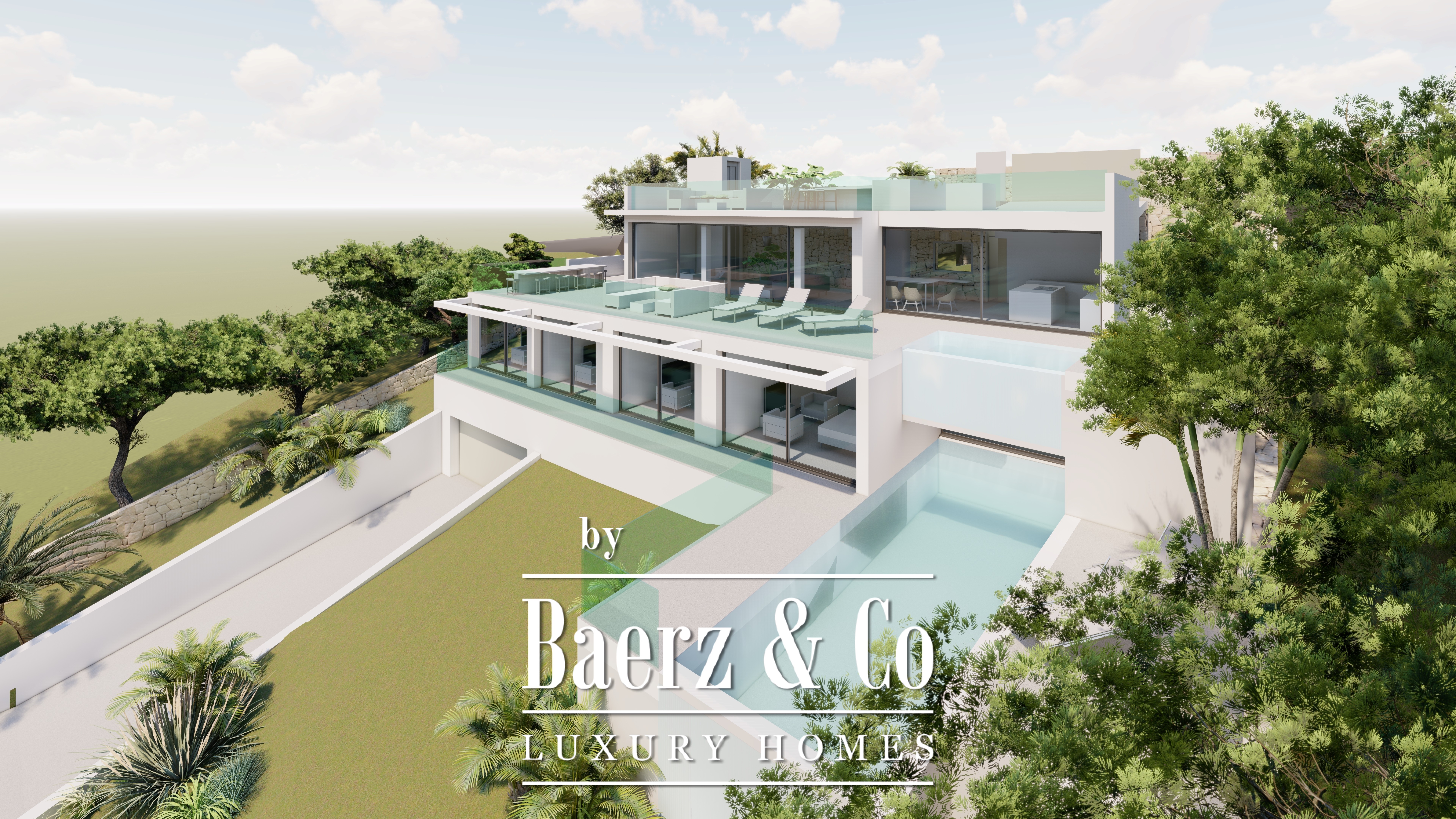 Villa Cala Salada Spain stands at the edge of the island's celebrated coastline, crafted by a renowned Balearic architect. This 551 m² villa delivers an exemplary standard of contemporary Mediterranean living, drawing the open sea and sky into every space. The structure rises across three levels where two cantilevered floors float above the gardens, anchored by a striking outdoor waterfall infinity pool that merges visually with Cala Salada’s horizon.
