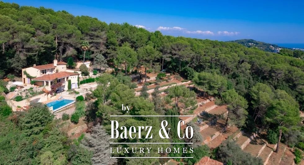 Villa Cannes with panoramic sea views presents an estate conceived for those who appreciate serenity and refined privacy. This property, moments from the Croisette, spans approximately 400m² of living space and is anchored in a 25,000m² park that melts toward the distant Mediterranean horizon.