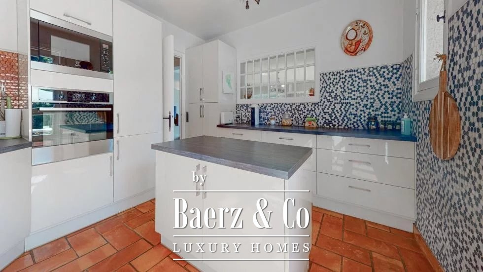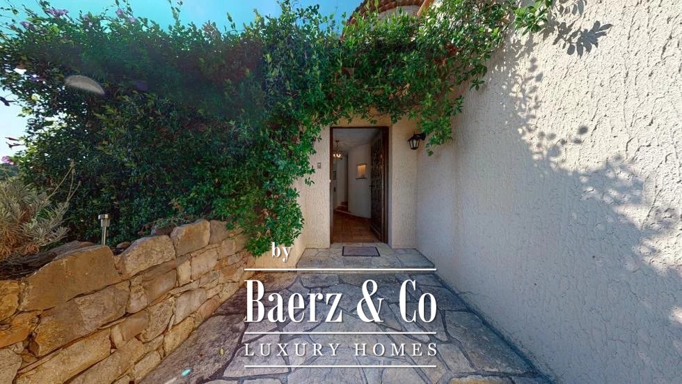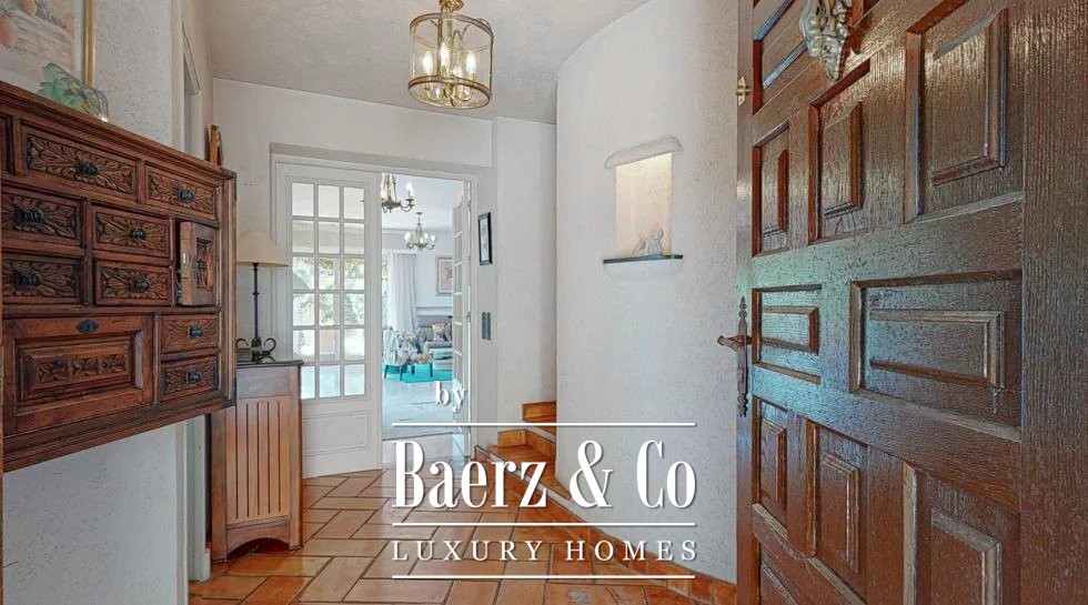 A separate caretaker’s house provides additional privacy for residents and staff alike. Two garages and exterior parking cater to logistical ease. Amenities such as air-conditioning, electric awnings, intercom, internet, and an electric gate emphasise security and comfort. This villa in Cannes, with both its panorama and architecture, offers a discreet retreat a short drive from the cultural heart of the Riviera.