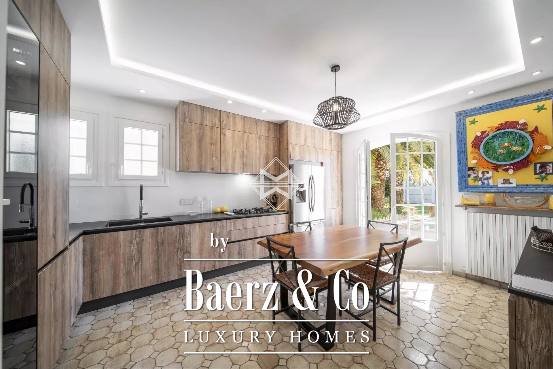 Villa Le Cannet anchors itself in a coveted residential enclave, offering a living experience shaped by privacy, balance, and light. This villa spans 196 m² and opens to a flat 1,001 m² garden dotted with palm and citrus trees, where tranquility prevails and every vista is sheltered from view.