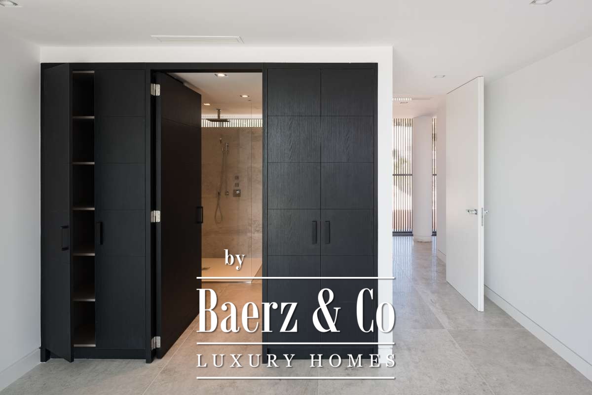 Within a secure gated community, security and privacy are woven discreetly into everyday living. Night vision cameras and underground pressure sensors underscore the sense of safety, while the southwest orientation grants sea views and sun-washed spaces. The residence offers five bedrooms, each with an adjoining bathroom, with underfloor heating throughout for year-round comfort.