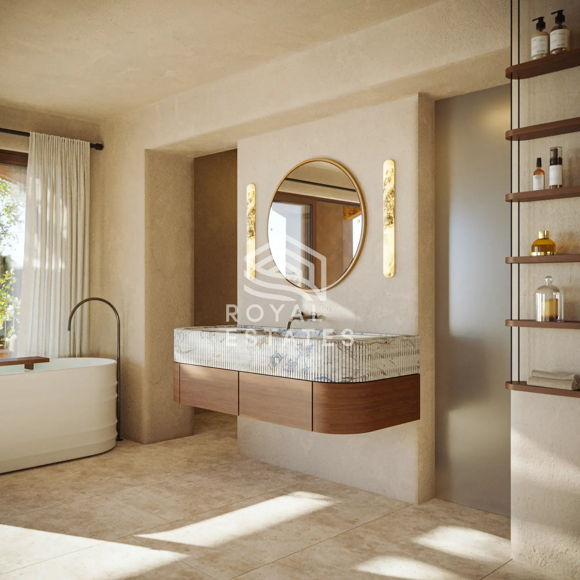 Offering 731 m² of internal space across a 1,439 m² plot, the villa has been harmoniously integrated into its Mediterranean setting. Each of the six bedrooms features an en-suite bathroom, ensuring comfort and privacy for guests and residents alike. The principal suite commands sweeping outlooks and direct access to outdoor terraces. Purposefully planned open living areas invite natural light, heightening the sense of transparency and openness throughout.
