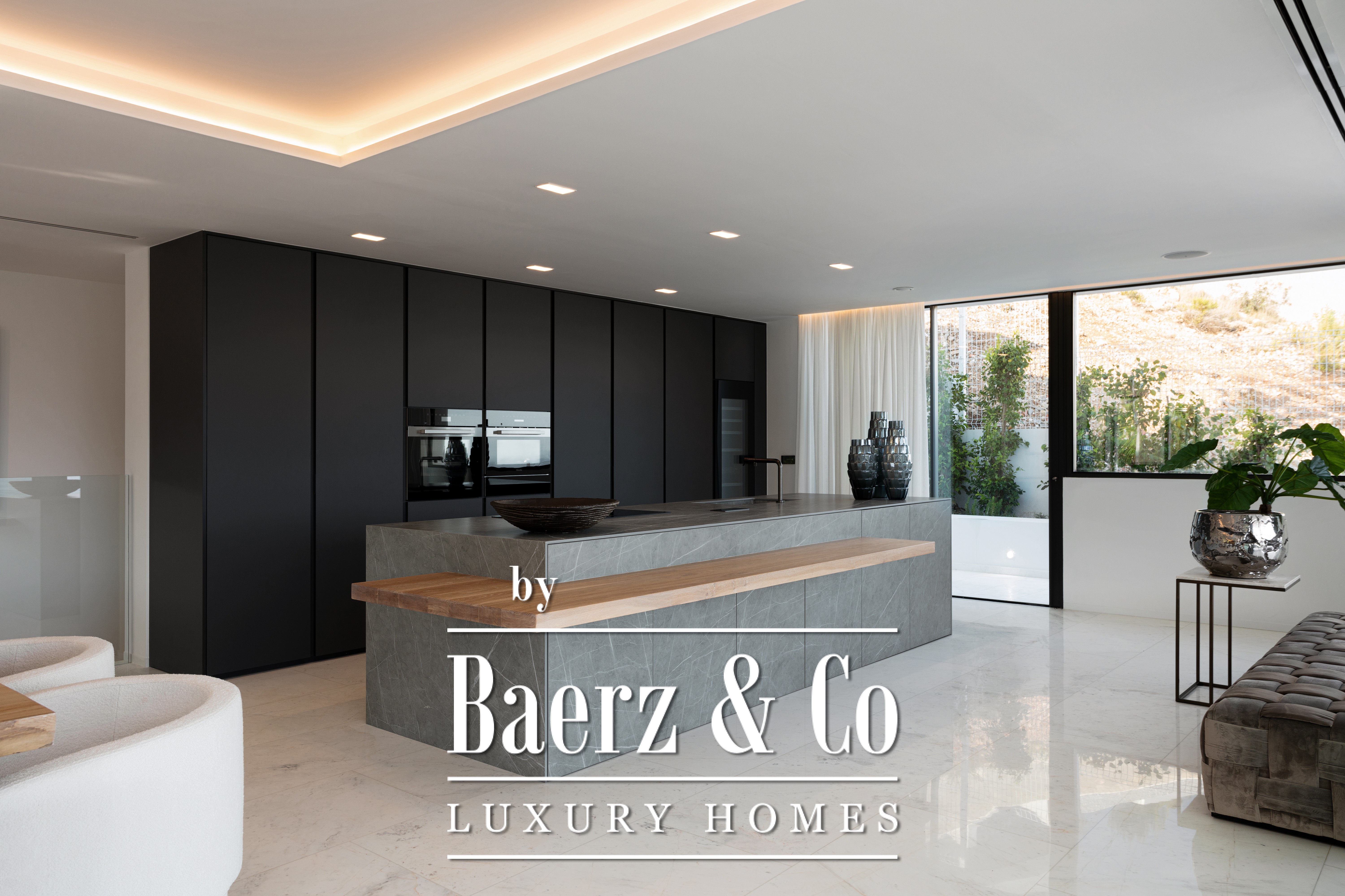 Featuring four bedrooms and six bathrooms, the interiors bear the signature style of Eric Kuster, fusing designer fixtures with understated comfort. The kitchen and bathrooms are fully appointed, while seamless floor-to-ceiling wardrobes underline the attention to detail. Smart home automation, a sound system, security cameras, floor heating, air conditioning, and high-end insulation ensure effortless comfort in every season.