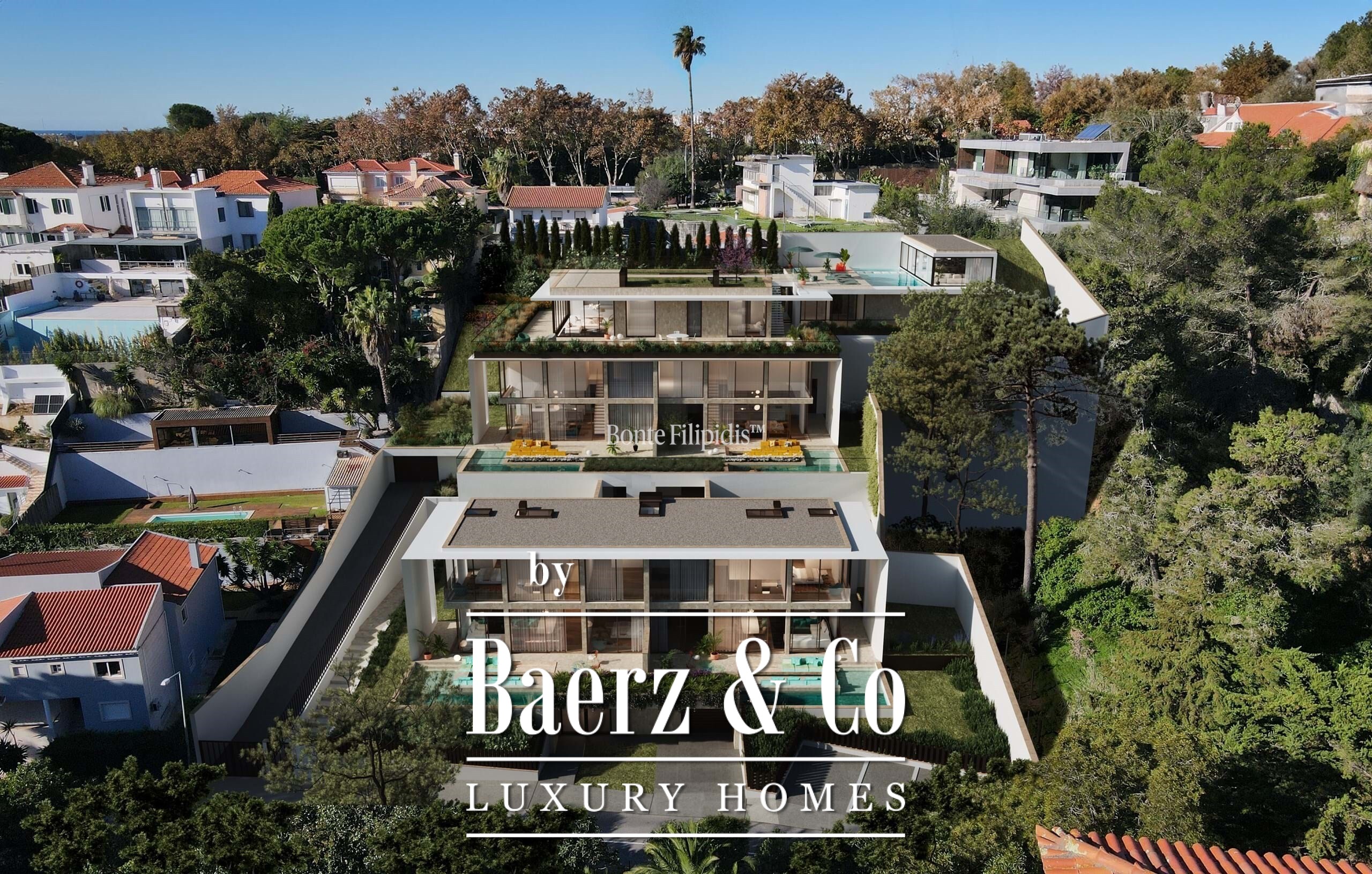 A landscaped garden and private swimming pool transition the living experience outdoors, offering a sense of calm and privacy within a secure condominium. Essential conveniences include an equipped kitchen and three interior parking spaces, solar panels for water heating, and pre-installation for electric vehicle charging. Residents benefit from concierge service, gym, and sauna, supported by a suite of security features and energy certification B. Alto Estoril places renowned international schools, restaurants, golf, beaches, and healthcare within easy reach, while Lisbon waits just 25 minutes away—a contemporary villa that balances destination living with refined ease. The rare combination of modern design, controlled light, and refined amenities makes this luxury villa for sale in Cascais e Estoril an exceptional proposition.