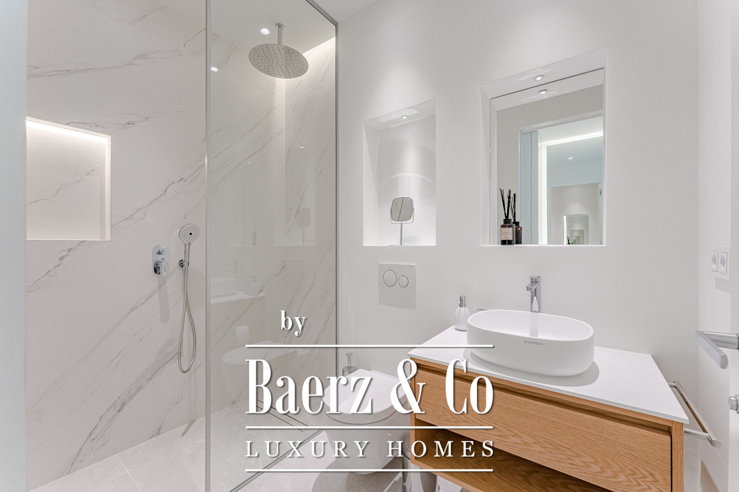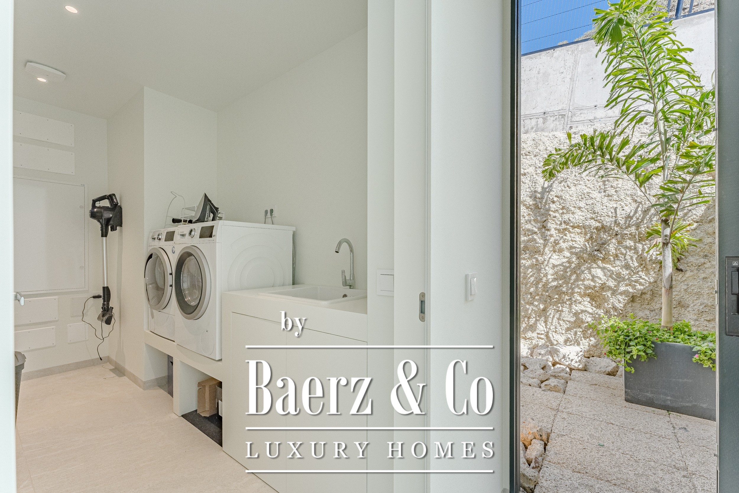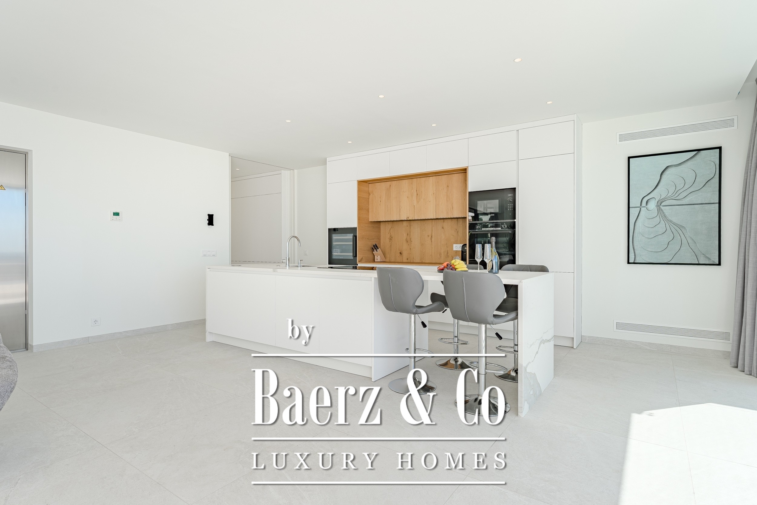 The home orients itself toward the ocean, framing each hour of sunlight and the shifting hues of the landscape. Three thoughtfully arranged levels include a private lift, generous dressing rooms, and a multi-purpose room for flexible living. Terraces flow outward, leading to an infinity heated swimming pool that forms the centrepiece of the exterior experience.