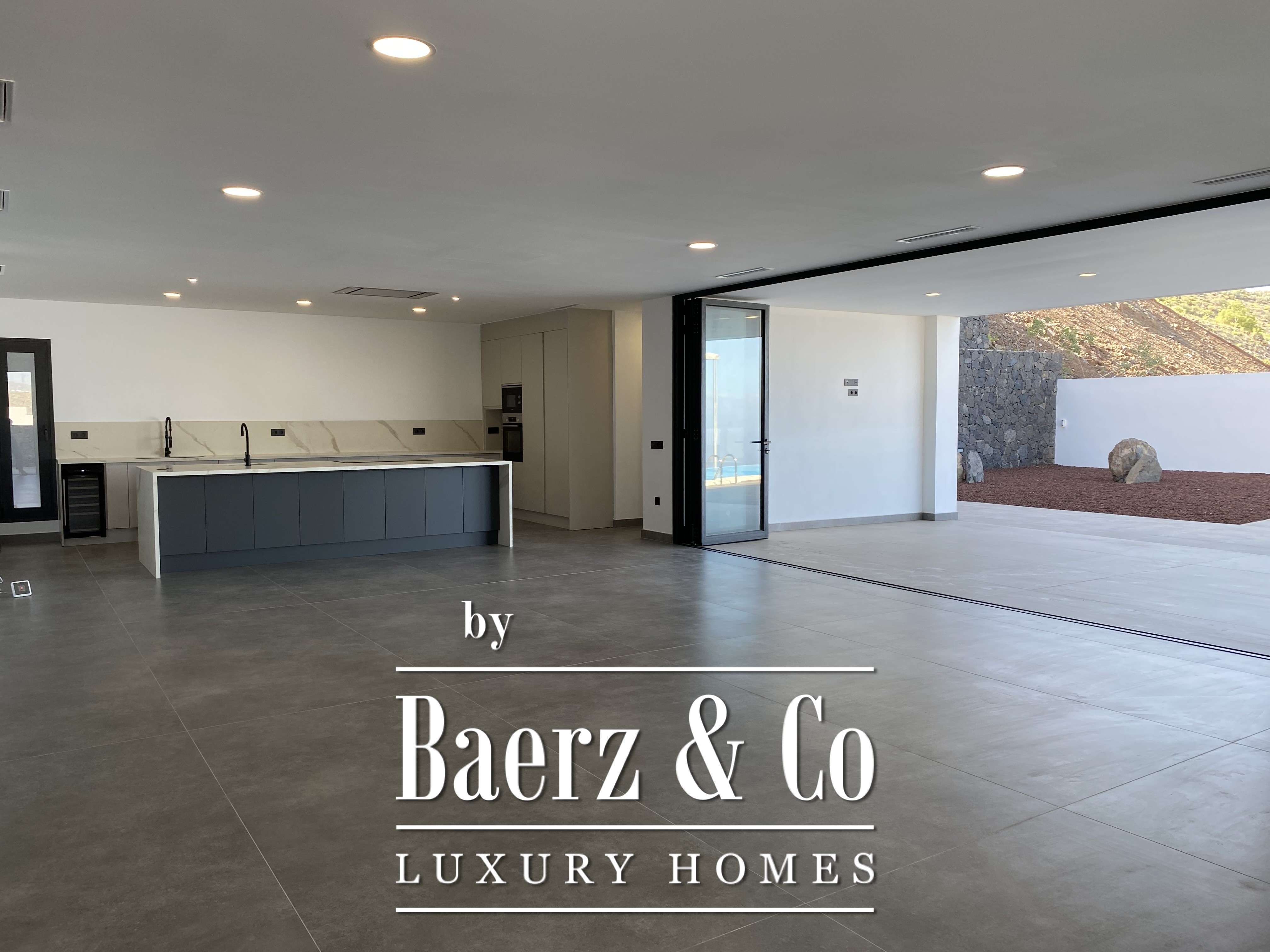 Villa Costa Adeje with panoramic ocean views presents an exceptional blend of refined architecture and contemporary comfort. This four bedroom, five bathroom villa stands within a distinguished neighborhood, shaped by careful attention to detail and high-quality materials. The living area of 230 m² unfolds across open, minimalist volumes that connect seamlessly to the outdoors through a foldable glass wall. Generous natural light fills the spaces, highlighting the designer kitchen and living-dining room that extend effortlessly towards the infinity pool of nearly 40 m² and the expansive 755 m² plot.