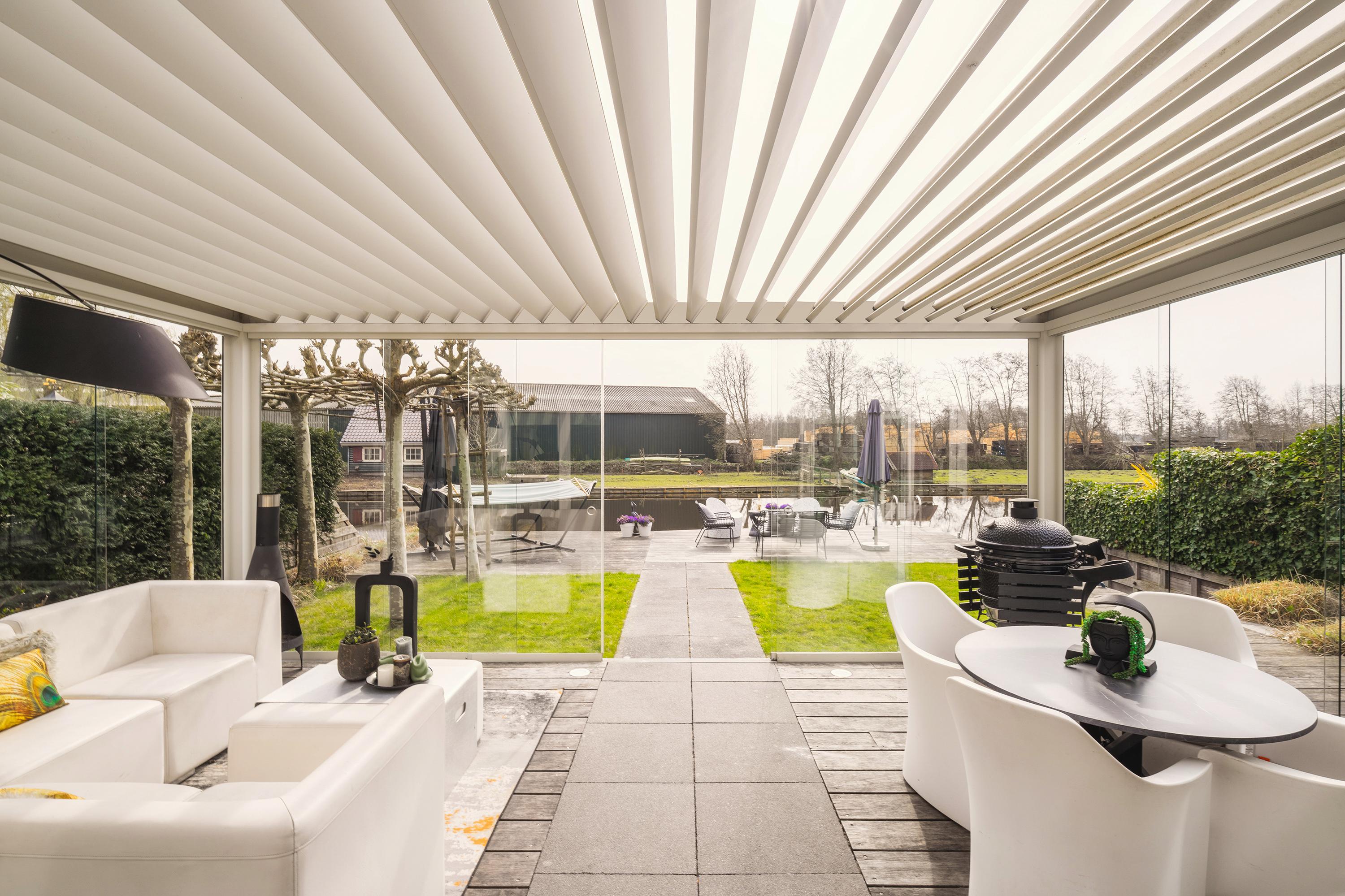 The garden is beautifully landscaped and thoughtfully designed. Located on the water with a private mooring for a sloop and a swimming ladder to enjoy the open water directly. Whether you are lying in the hammock or sitting on the terrace by the water, the view of the water and Het Twiske never gets boring. The garden has drip irrigation for optimal watering and atmospheric lighting with 12V spots. Under the canopy with louvered tilting roof and glass sliding doors (with integrated drainage function), you can enjoy it all year round.