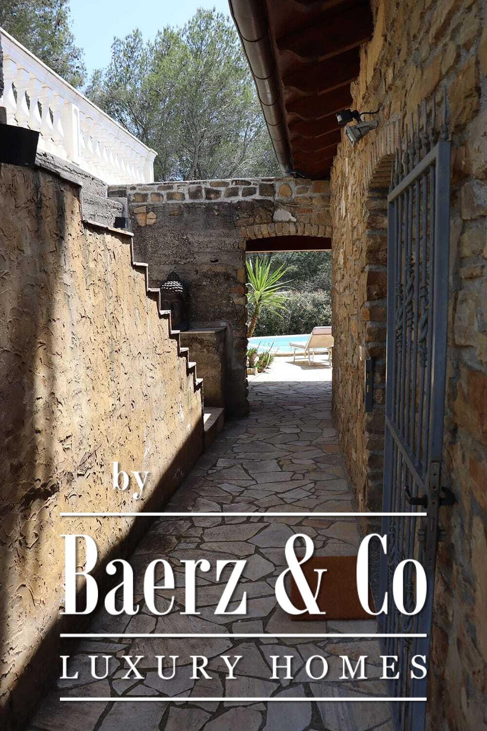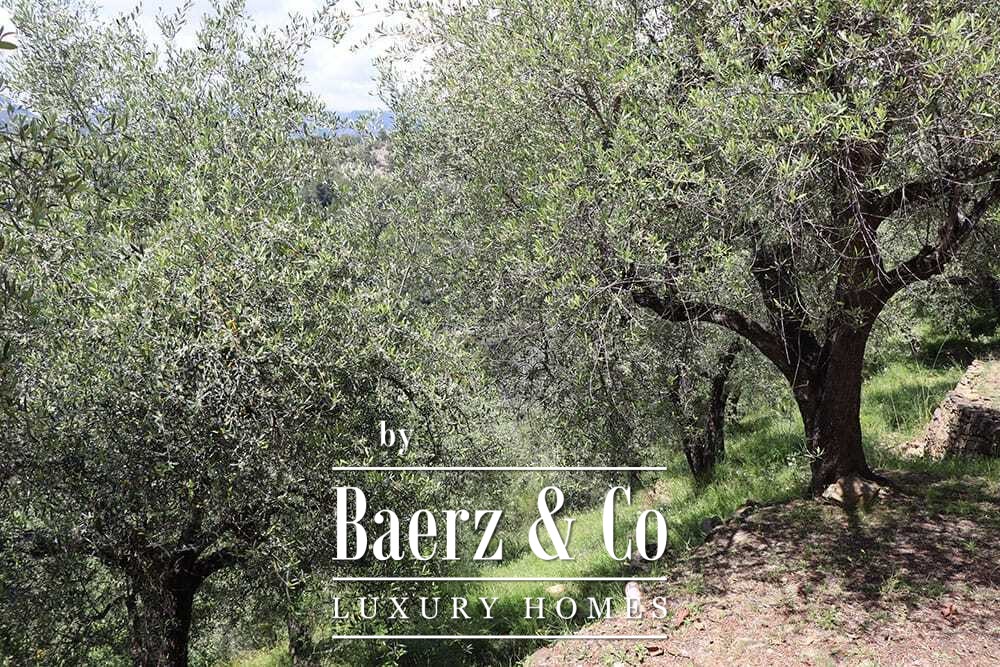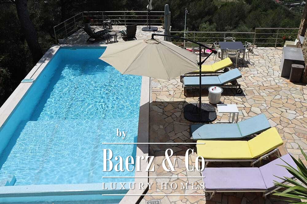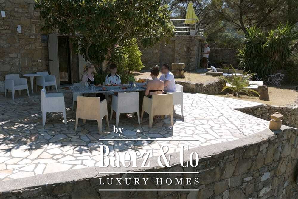 The 11 by 4 metre swimming pool, fully renovated in 2022, lies next to an expansive terrace, offering views over the valley and out to the sea. Multiple terraces, outdoor kitchens, and shaded pergolas invite relaxed dining through all seasons. Paths around the house are lined with olive groves, with hours of sun ensuring exceptional harvests.