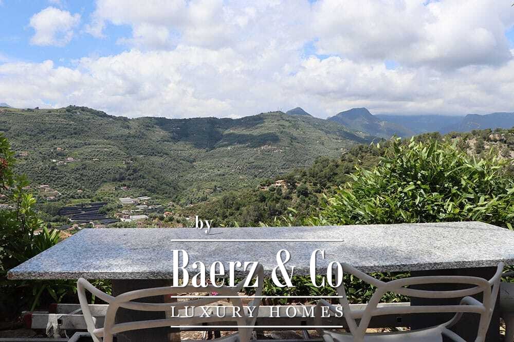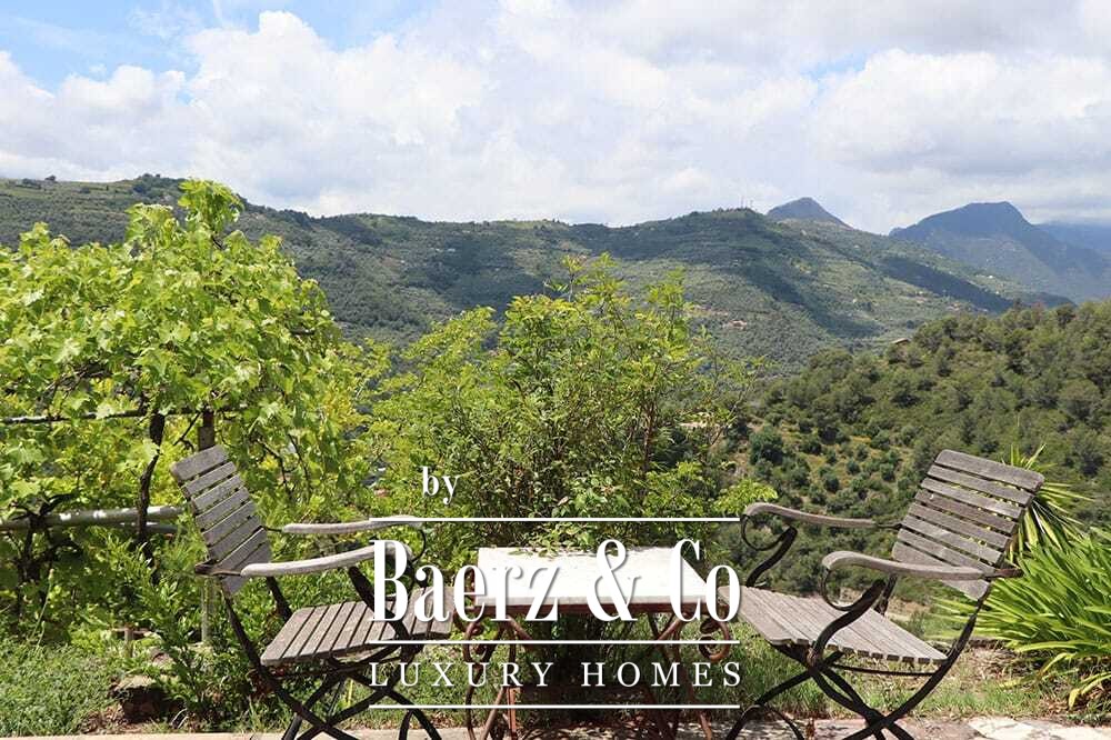 Access is through a private road with a remote-controlled gate, ensuring privacy and quiet. There is parking for several cars. The medieval village of Dolceacqua is less than ten minutes away, with the coast and towns such as Ventimiglia, San Remo, and Monte Carlo within easy reach. Direct hiking routes lead from the property into the surrounding hills and picturesque villages, while beaches and cultural events remain close at hand. This luxury villa for sale in Dolceacqua offers peace, provenance, and a distinct sense of place, allowing owners to embrace both seclusion and the richness of Ligurian life.