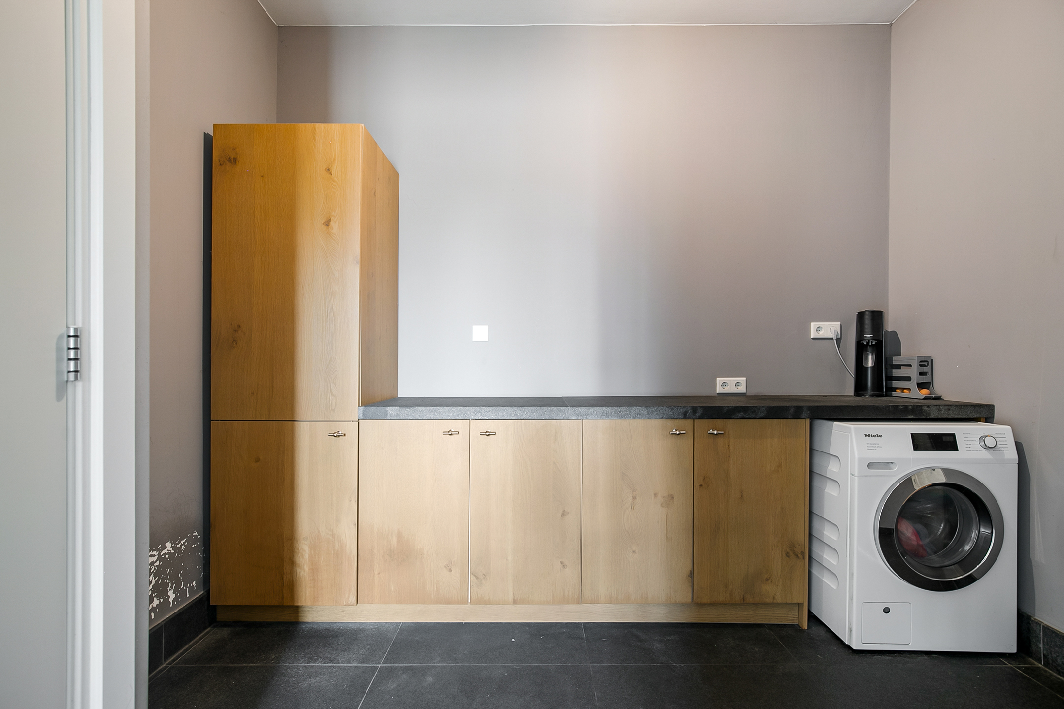The very generous attic space is currently mainly used as storage, but can of course also be used and furnished for various other purposes. 4 beautiful semi-circular dormer windows provide natural light and ventilation. This room houses the set-up for the central heating combi boiler (Nefit), the mechanical ventilation unit and the underfloor heating unit. A fixed staircase provides access to the rear hallway.