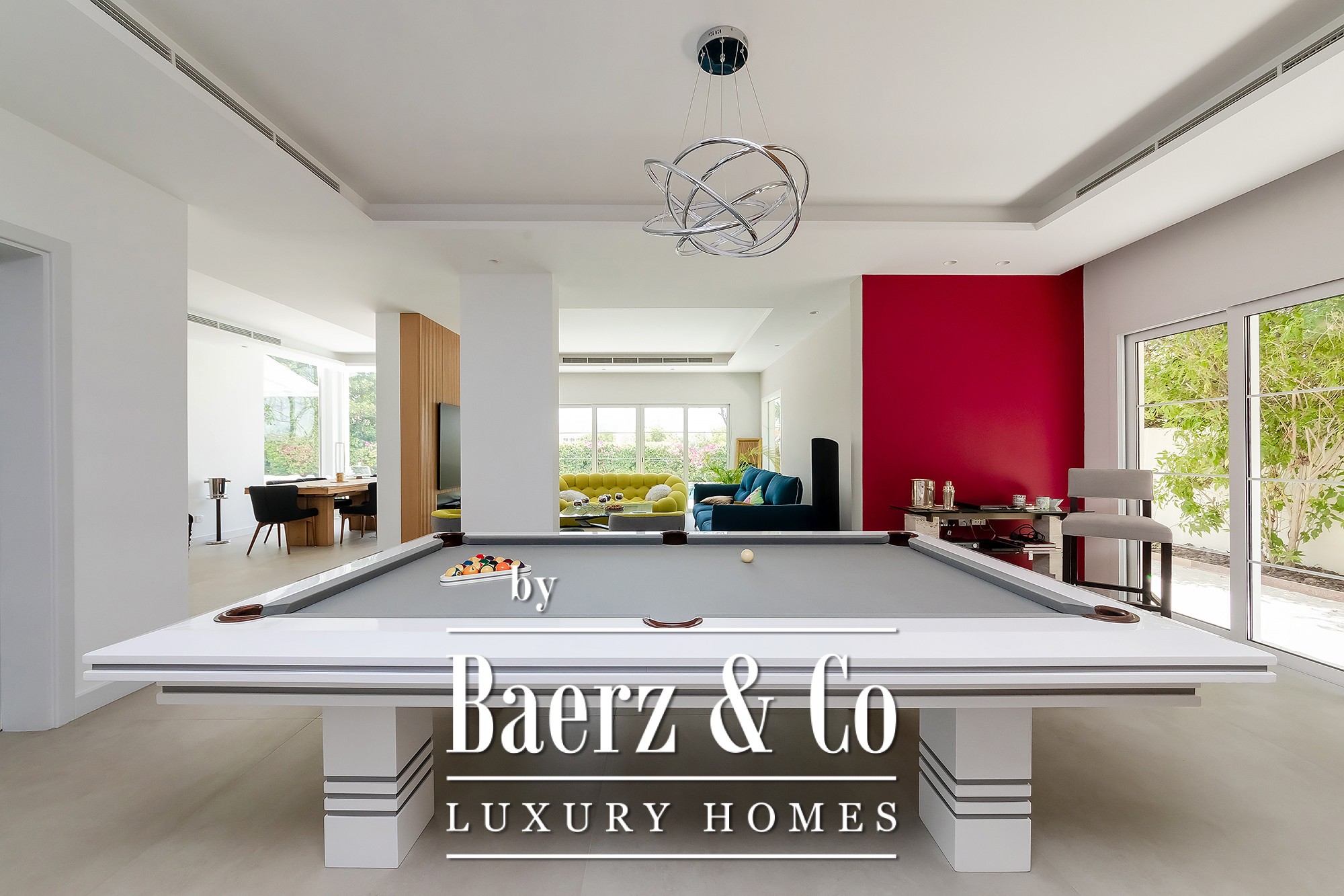 Villa Dubai offers a composed sanctuary for those who appreciate architecture, space, and discretion. This six-bedroom villa presents 510 m² of fully upgraded interiors, designed with an emphasis on proportion and contemporary refinement. The open-plan living and dining areas create a seamless flow, enhanced by natural light and quiet views of the lake. Each bedroom is appointed with considered finishes, while a dedicated cinema room and an additional one-bedroom apartment expand possibilities for private retreat or hosting guests.