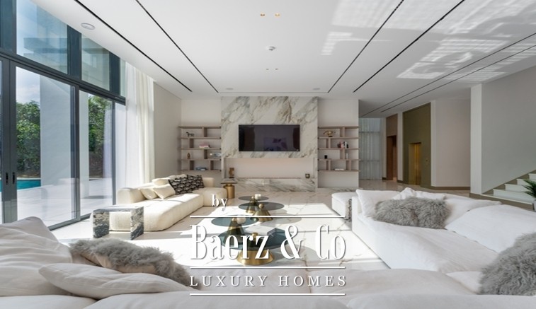 The rooftop terrace presents panoramic city views, a Jacuzzi, lounge and dining areas, and a bar. Proximity to a championship golf course and the discretion of Dubai Hills Estate further anchor this villa as a rare offering for those who value refined living and privacy.