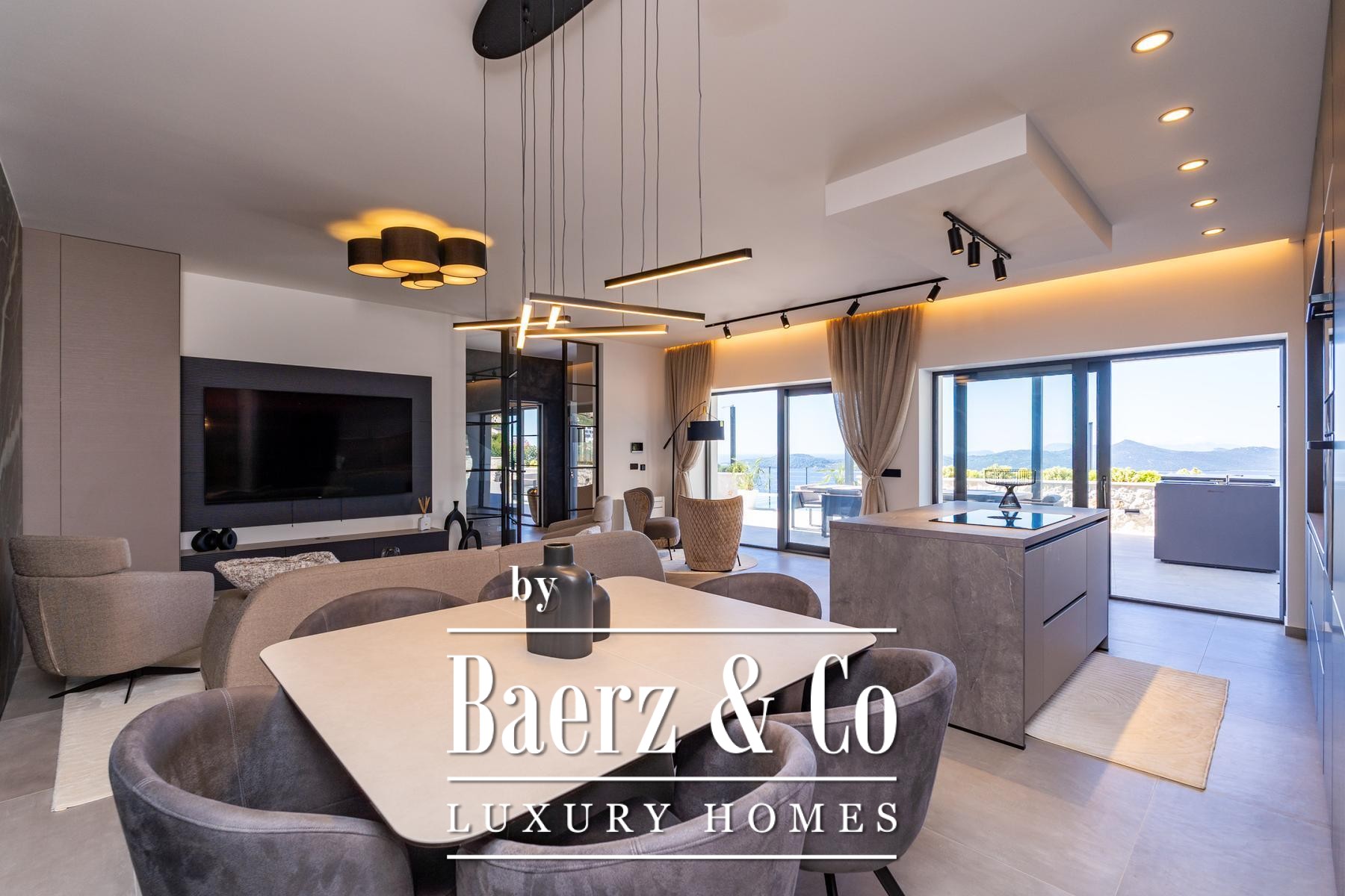 On its 740 m² plot, the property invites outdoor living through a generous terrace, manicured Mediterranean garden, and an elegant pool—all oriented toward unobstructed sea views. Moments of wellness are nurtured by a private gym, fitness space, and a modern sauna, integrating relaxation seamlessly into daily life. Storage is thoughtfully incorporated, offering both usability and clarity within the home.