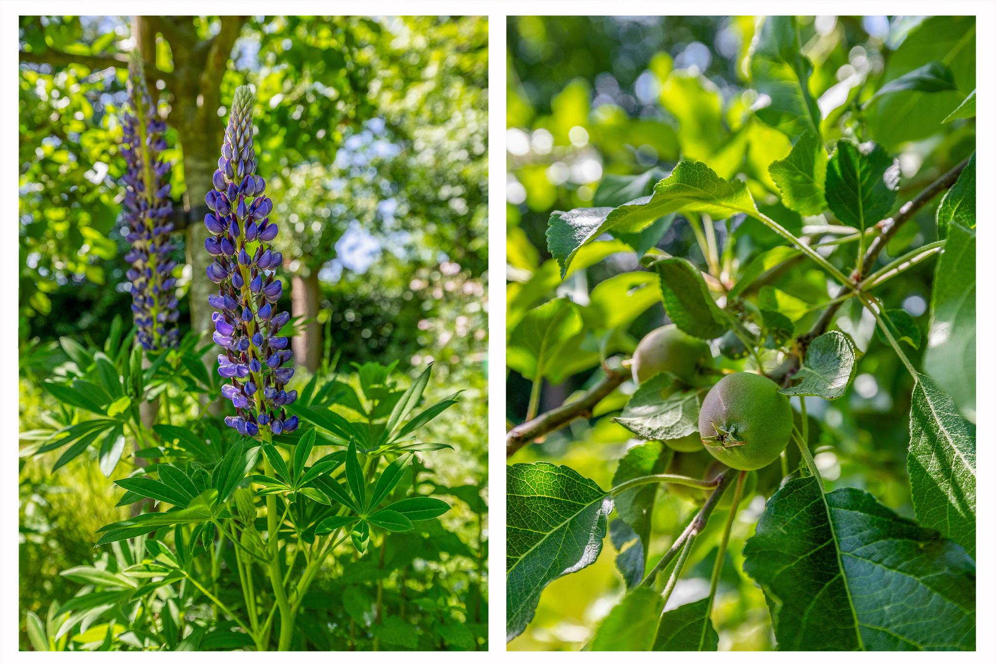 The house also has a landscaped front garden with three historic pear trees and a walnut tree on the side. The wild roses next to the driveway are rose hips, which can be used to make jam, for example.