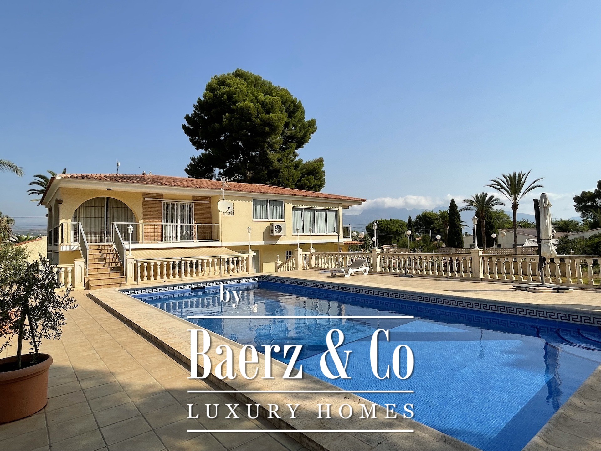 With pool, expansive parking and garage, and a tranquil residential atmosphere, this luxury villa for sale in Albir offers a setting where pace slows and privacy is preserved.