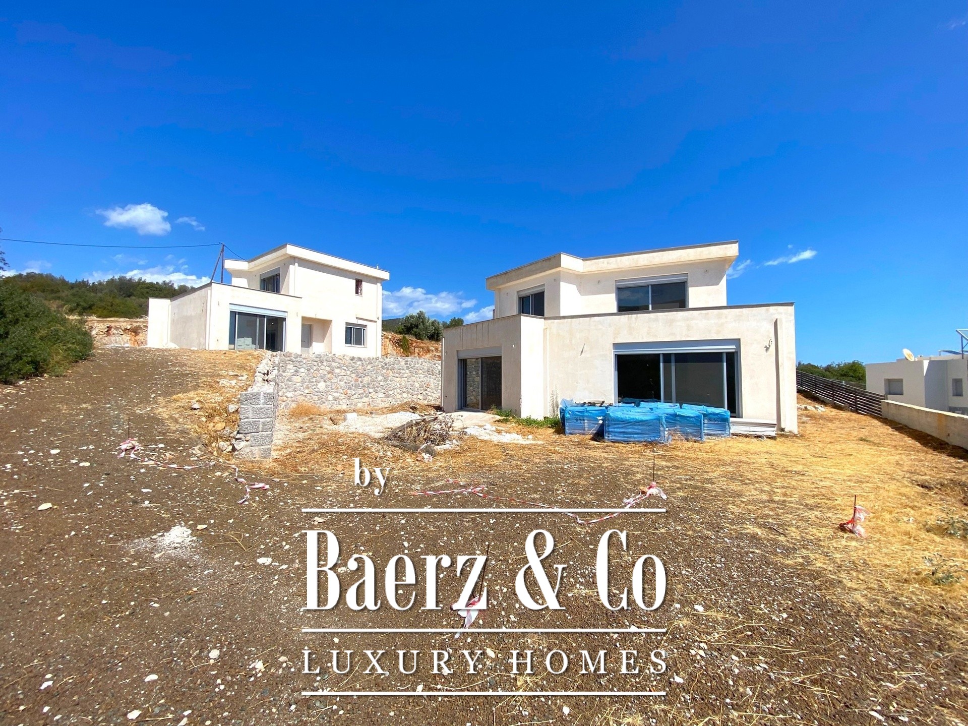 Detached House Epidavros presents a rare composition of space and outlook, positioned within meters of two tranquil beaches. Across 550 m², three unfinished residences merge comfort with immersive panoramas. Each home spans two levels, its open-plan living and kitchen area defined by generous glazing that fills interiors with light and frames panoramic sea vistas. A flexible ground floor space adapts to work or rest, accompanied by laundry and a bathroom, while double glazing and a security door ensure comfort and ease.
