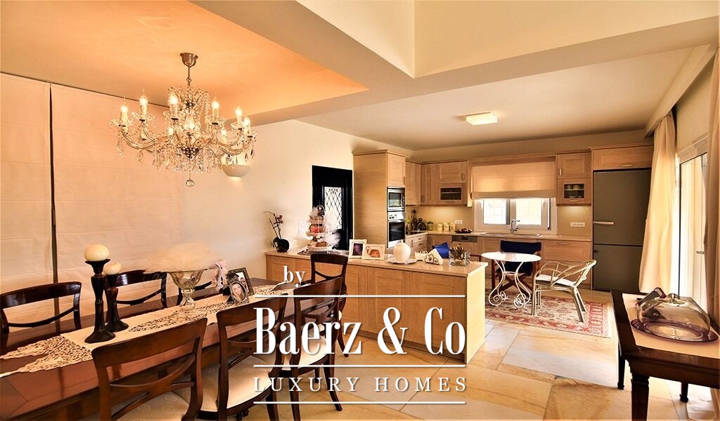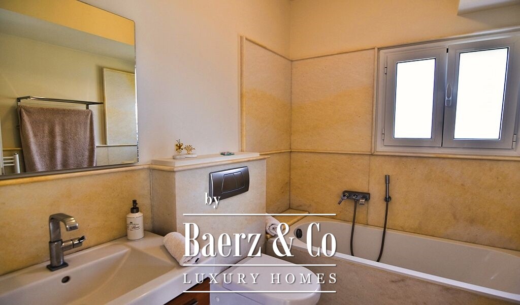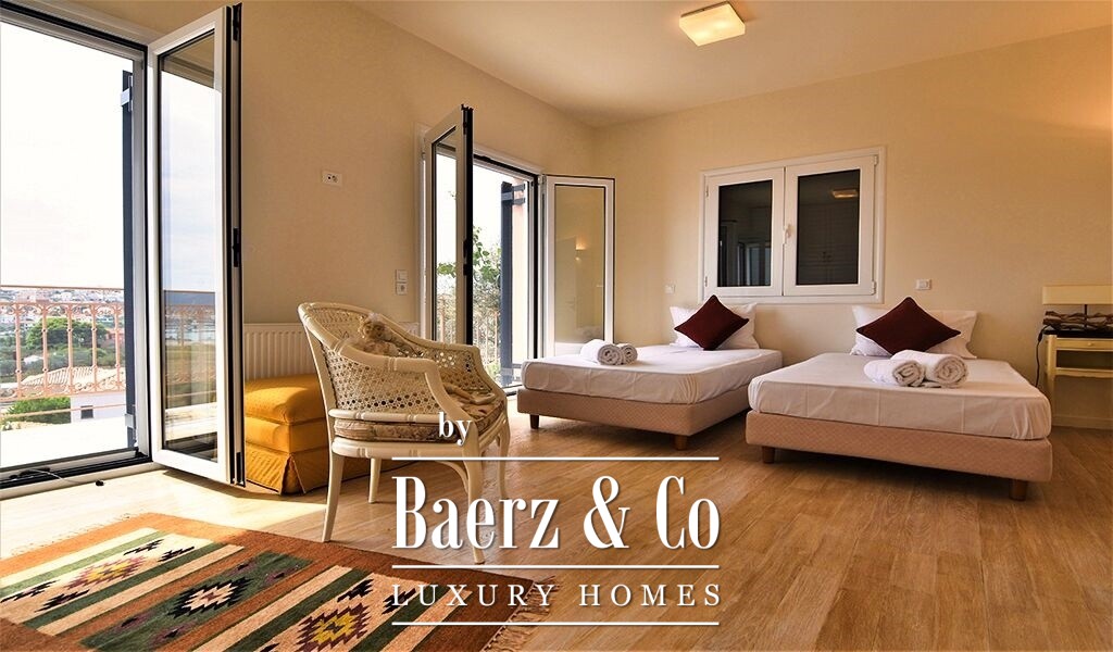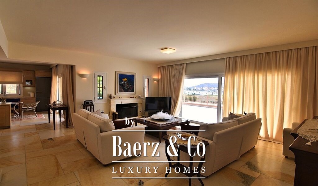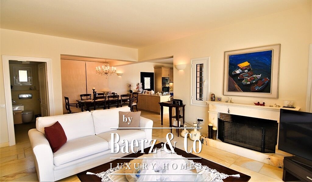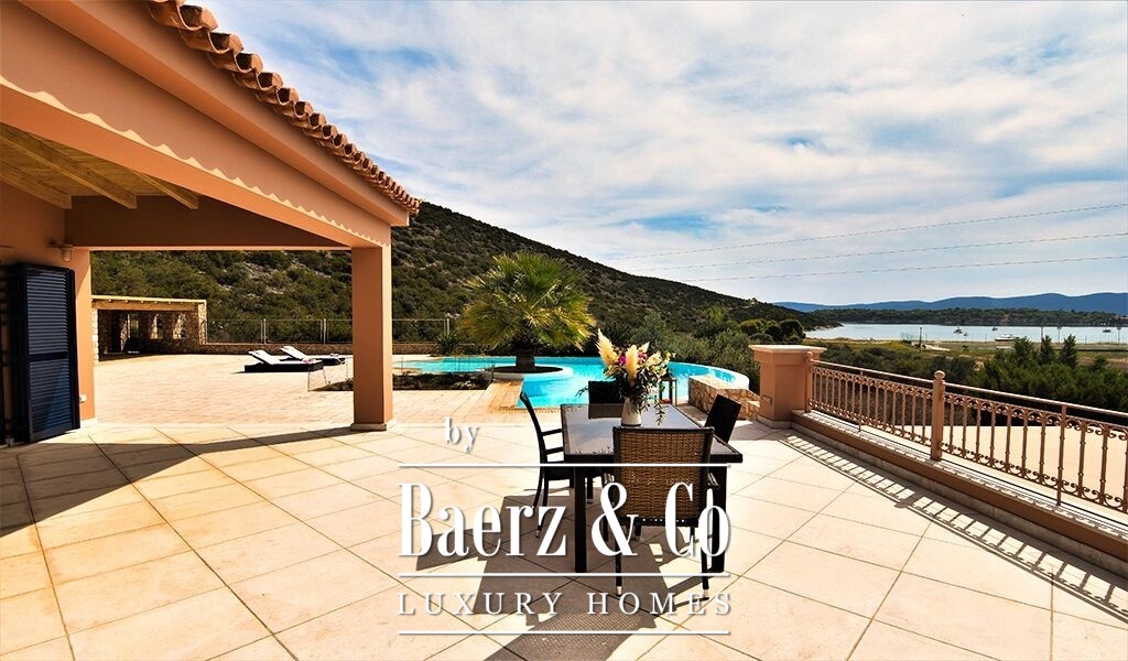 The villa’s Mediterranean architecture and excellent construction standards are evident throughout, complemented by double glazing, security door, and autonomous heating, as well as oil and air conditioning via radiators. Open and covered parking accommodates up to seven vehicles. Outdoor living is centered around a 68 m² semi-circular infinity pool with pool bar and pergola-shaded seating. From this residence, the lace beaches of the region are 2,000 meters away, with the promise of a professional golf course only 13 kilometers distant and direct access to the islands of Spetses and Hydra. This property articulates timeless luxury and the natural rhythm of Mediterranean living.